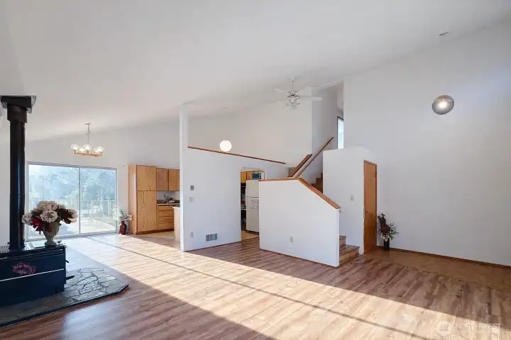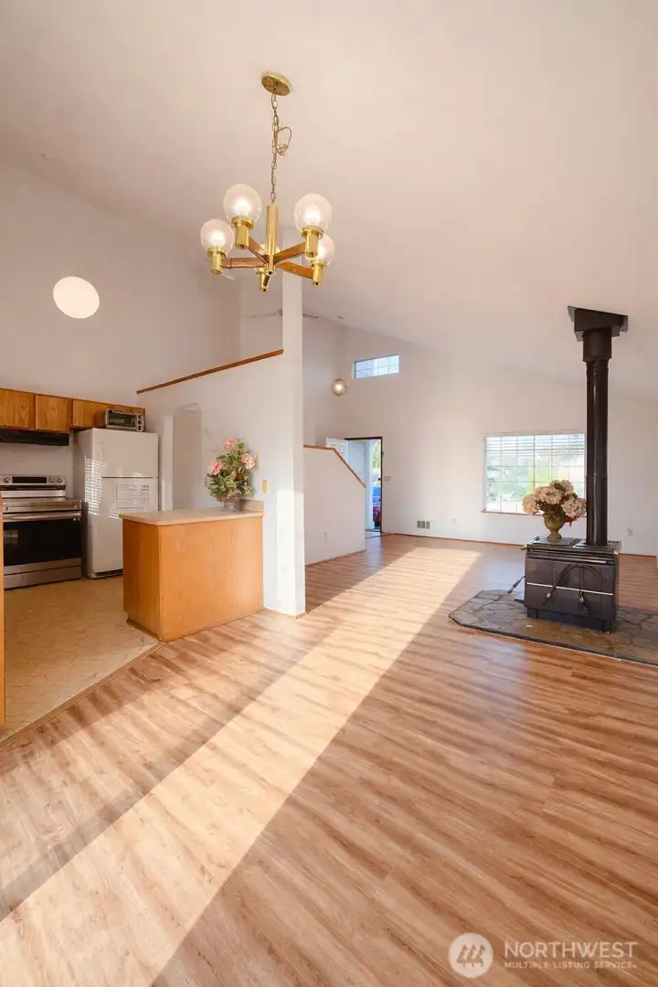 Enjoy open sky views and a sense of space from the upper level master bedroom. Light-filled and inviting, this 3-bedroom, 2-bath Finn Hill home features vaulted ceilings and an open layout with abundant natural light throughout. Recent updates include new flooring and fresh interior paint, along with some exterior improvements. The main level offers a spacious living and dining area with great flow, while all three bedrooms and two bathrooms are located upstairs for added privacy. The primary bedroom enjoys a peaceful outlook over a quiet cul-de-sac, bringing in beautiful natural light.Step outside to a generously sized backyard with room to personalize and create your ideal outdoor setting. A two-car garage, plus additional off-street parking, provides ample space for vehicles and storage. Located in a desirable neighborhood near parks, schools, and everyday amenities, this home offers comfort today with the opportunity to make it your own over time.
