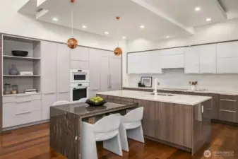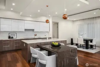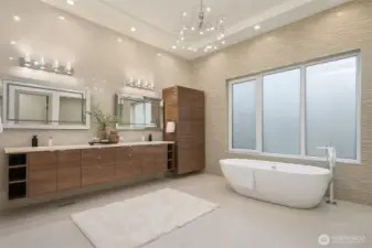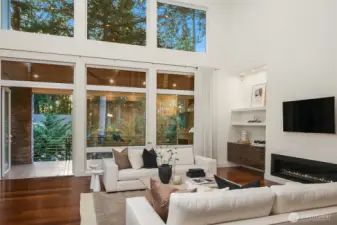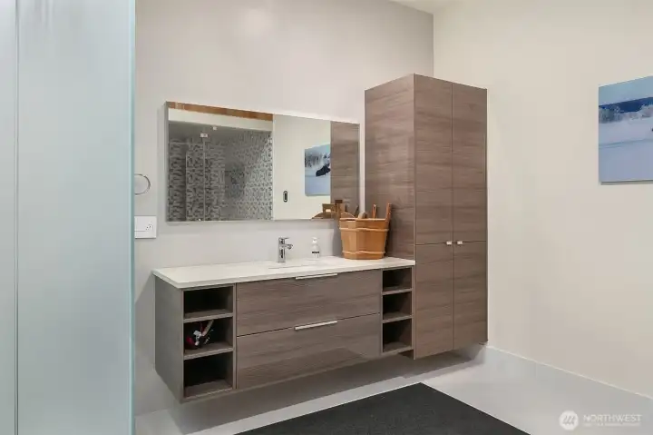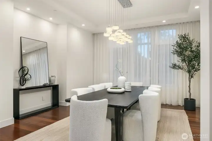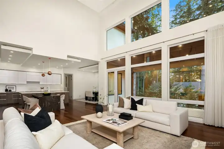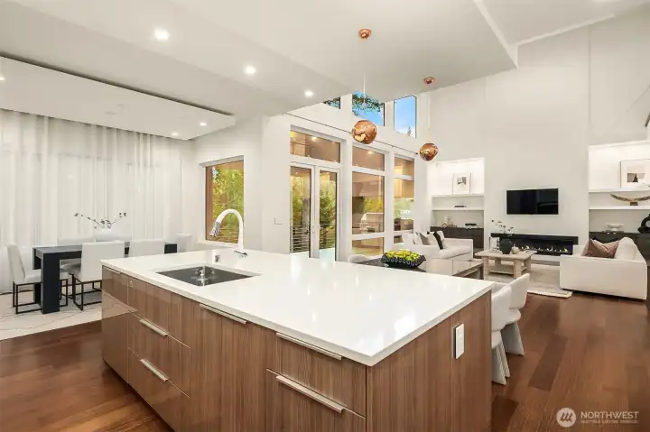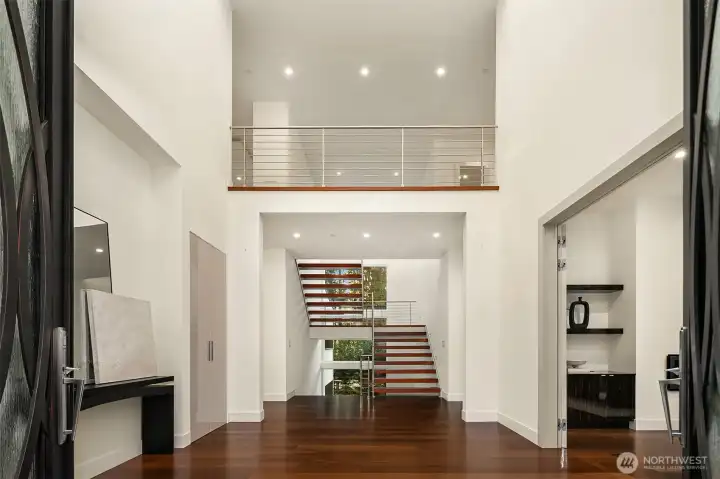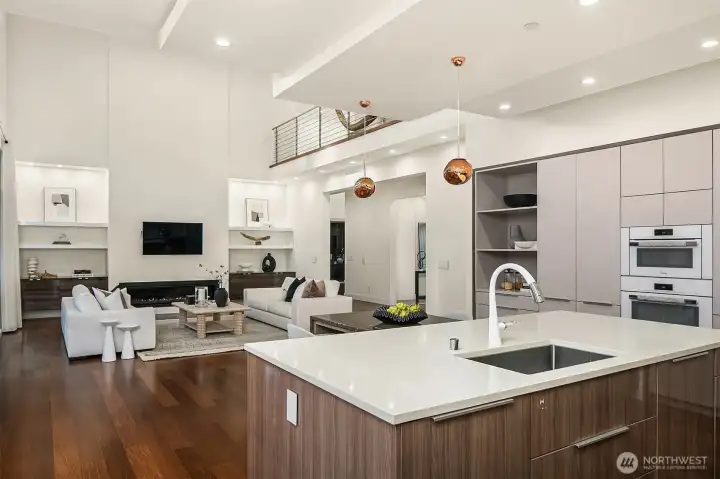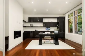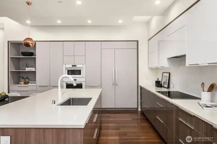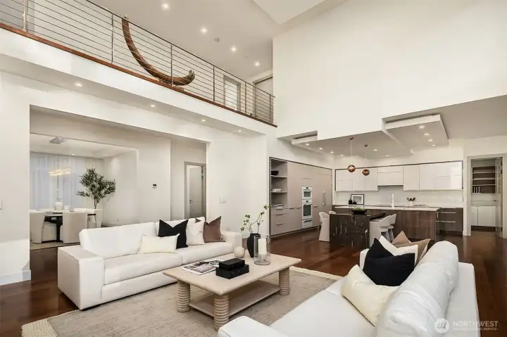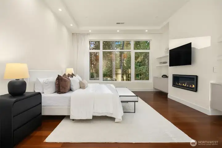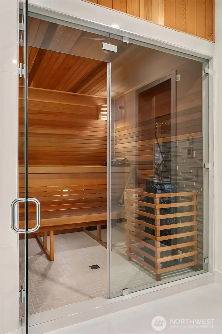 A statement in scale, design, & precision, this custom-built estate spans over 8,300sf of elevated living where no detail was overlooked. Designed for both grand entertaining & effortless everyday living, the home unfolds across 3 levels with soaring spaces, seamless smart home integration, & refined materials like dark cherry hardwoods & imported Italian cabinetry, windows & doors throughout the entire home. A dramatic great room with 20ft+ ceilings & gas fireplace on the main level flows to a covered deck with a built in BBQ area. The great room is complemented by a luxurious chef’s kitchen with top tier Miele appliances, including a speed oven, 2 dishwashers, & induction cooktop, formal & informal dining spaces, an office, & an elevator that takes you to each level. The main floor primary suite is designed for true convienence, with a gas fireplace, custom walk-in closet, & a 5 piece bathroom with heated floors & large curbless shower. A sculptural floating steel and wood staircase leads you upstairs to spacious ensuite bedrooms & a generous bonus room. The lower level is dedicated to wellness & recreation with a gym, sauna, & steam room, with an guest suite & rec space. Access to a covered patio & a sprawling backyard with irrigation create endless opportunities. With a laundry room on each level, generator, security, 8 zones of heating, & 3 car garage with generous 20+ car parking outside, this is luxury living at an exceptional scale.