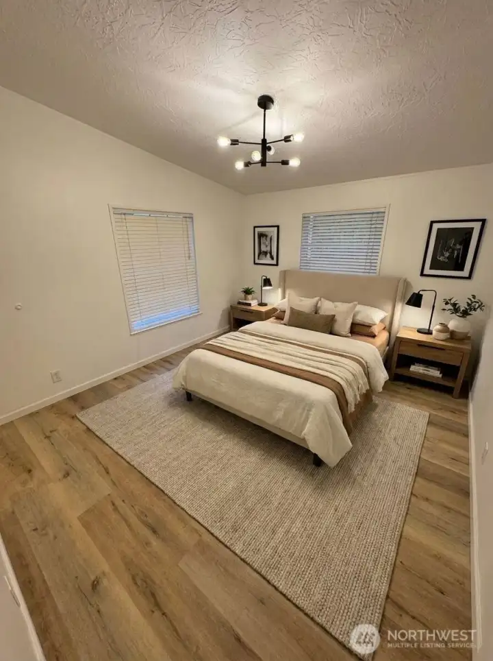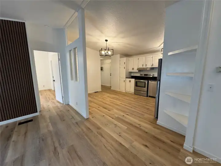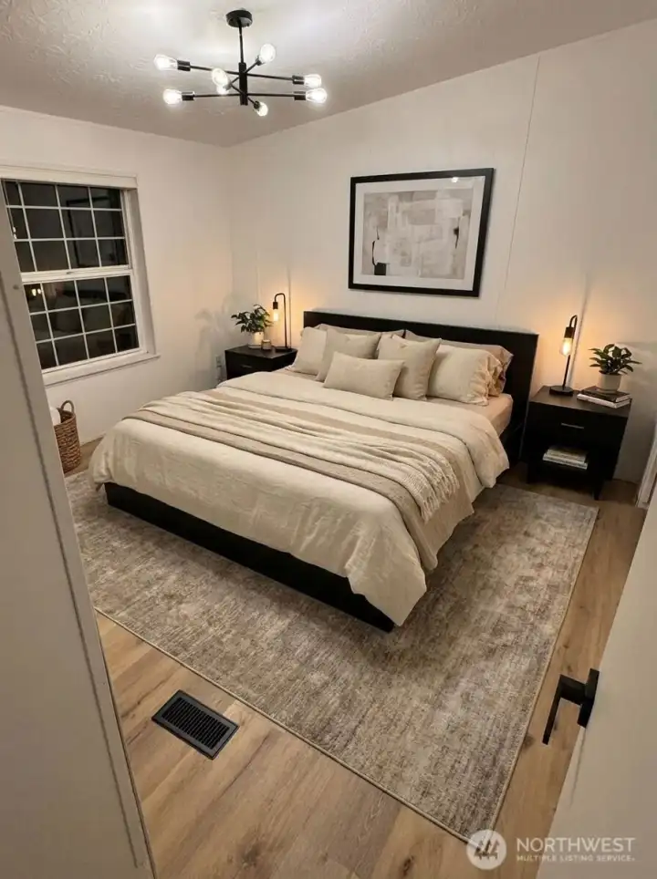 Beautifully updated 1993 double-wide(27x44) located in the highly desirable all-ages Country West Mobile Home Park. This 3-bedroom, 2-bath home features an open floor plan with vaulted ceilings, new plank flooring, fresh interior and exterior paint, and modern LED lighting throughout. Kitchen and baths include quartz countertops, new sinks, faucets, tubs with surrounds, and stainless steel appliances. Smart exterior door with activated frosted glass. Large front porch, privacy fencing, rock landscaping, and new exterior lighting add to the curb appeal. Bonus: Fully finished shed with drywall, insulation, electricity, heater, and lighting - ideal for office or flex space. Must be park approved prior to sale.