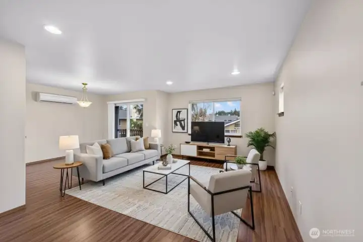 Beautifully updated home with spacious, open-concept living! The kitchen features rich cabinetry, ample counter space, and stainless steel appliances, flowing seamlessly into the dining and living areas—perfect for everyday living and entertaining. Enjoy durable flooring throughout the main level and plenty of natural light. Step outside to a private deck overlooking a fenced backyard—ideal for relaxing or hosting. The home also offers a generous primary suite with ample space, plus additional well-sized rooms and flexible living areas. Additional highlights include in-unit laundry, a one-car garage, and a low-maintenance yard. Conveniently located near shopping, dining, and everyday amenities. Some photos are AI Generated.