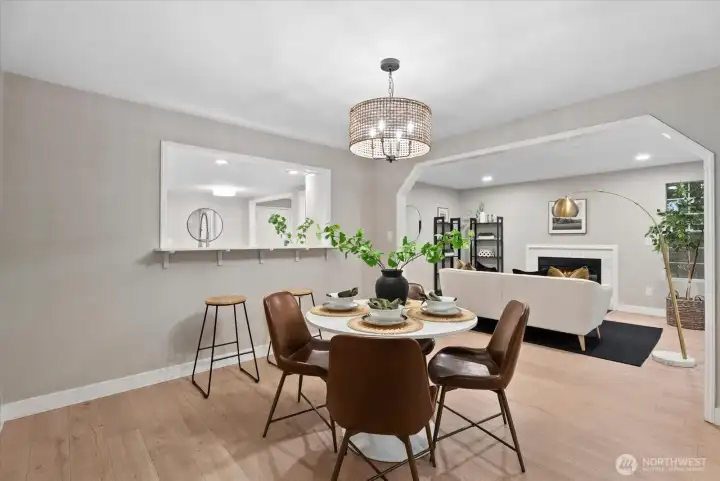 Elevated living awaits in this beautifully updated 3 bedroom, 3 bathroom single family style townhome. This move in ready home features luxury vinyl plank flooring throughout, an updated kitchen with quartz countertops, stylish cabinetry, and stainless steel appliances. A stunning color palette and modern touches carry through every room. The designer inspired updates continue into the bathrooms, and the spacious primary suite offers a huge custom walk in closet and a gorgeous spa like ensuite. All bedrooms are located on the upper level and filled with natural light. Enjoy an open, airy living area with abundant windows and a cozy gas fireplace, plus a large fenced yard and expansive patio backing to a peaceful greenbelt—perfect for quiet mornings or relaxed evenings outdoors. EV charging available. Ideally situated on the Kirkland/Redmond border, this home provides quick access to freeways, major employers, shopping, dining, and everyday conveniences. Pre inspected and ready to call home, and located within the highly desirable Lake Washington School District, this property blends comfort, style, and an unbeatable location.