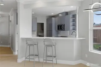 Welcome home to life at The Ranch! Over $75,000 in recent upgrades!! Single level/no steps corner unit condo with lots of large windows and skylights create an open and inviting space. The home proudly boasts brand new hardwood floors throughout the main living areas and bedrooms, cozy fireplace, fresh light paint inside, brand new remote-operated blinds in main area and shutters in the bedrooms, custom built-ins throughout, brand new kitchen and laundry cabinets and counters, tons of storage in the oversized garage and attic. The generous sized primary suite features a walk in closet, en-suite bathroom with dual sinks and walk in shower. The second bedroom is right next to the second full bathroom, situated opposite from the primary for privacy when you are hosting guests. Quiet, private patio and fully fenced yard. This peaceful and serene neighborhood is just minutes from Whole Foods, Trader Joe's, Chamber's Bay, Fircrest Golf Club, Highway 16 and I-5.