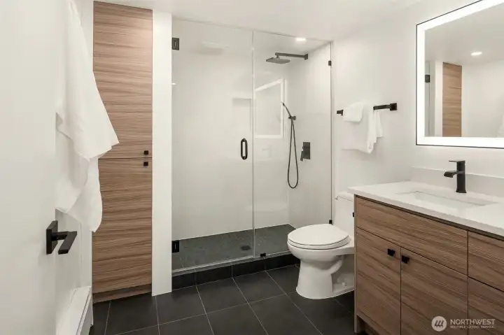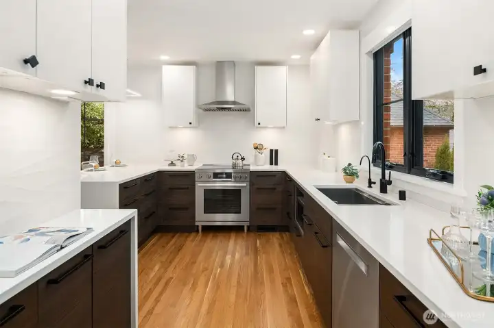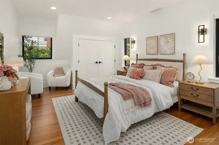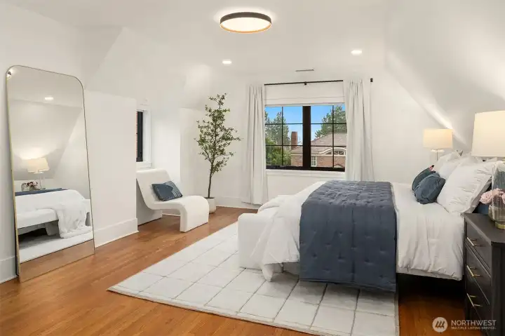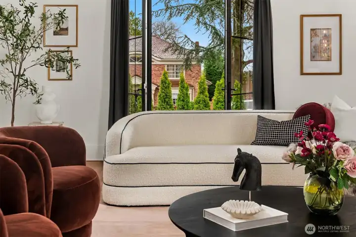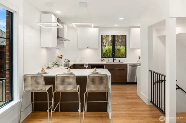 Perched above one of Washington Park’s most sought-after streets, this residence offers an exceptional sense of light, scale, and thoughtful design. Its elevated setting provides both privacy and outlook, while newly opened living spaces create effortless flow for everyday living and entertaining. A fully reimagined kitchen anchors the main level, featuring new appliances and a refined open layout that connects seamlessly to dining and living spaces. Floor-to-ceiling windows and newly added French doors enhance the home’s connection to the outdoors, replacing a former living room window with direct yard access, and introducing French doors at both the front and rear of the dining room to create a true indoor-outdoor living experience. Upstairs, a rare three bedroom en suite layout offers exceptional comfort and privacy, including a light filled primary suite with a generous walk-in closet. The lower level adds versatility with a newly finished basement featuring an additional bedroom, bathroom, lounge, and space plumbed for a future kitchenette. The home has undergone a comprehensive remodel with extensive upgrades, including all new finishes, appliances, copper plumbing, windows, HVAC, electrical panel, and sewer line. Outside, all new landscaping, curated lighting, and a newly added retaining wall enhance both function and presentation. A rare blend of timeless design, thoughtful functionality, and extensive updates in one of Seattle’s most coveted neighborhoods.