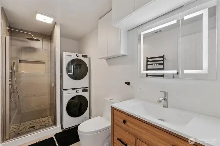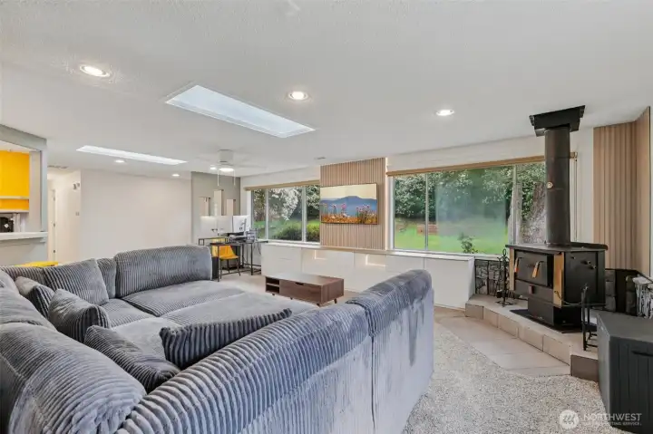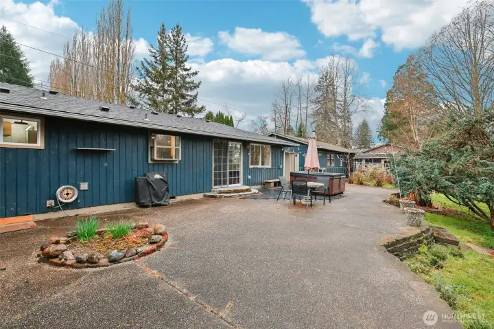 A rare blend of privacy, modern comfort & future potential—this beautifully refreshed retreat is tucked on a quiet dead-end street with a serene creekside backdrop & outdoor fireplace. Fresh interior paint & updated living spaces offer comfort and storage. Kitchen features all new appliances, incl. washer & dryer. Two fully remodeled baths with heated floors & towel racks. Large windows + 2 skylights fill the home with natural light. New roof & water heater (2024). Enjoy year-round living with hot tub & wood-burning oven. A detached 3-car garage on separate buildable lot adds versatility & potential for future new build. GPS robot lawn mower included. Minutes to Monroe & Snohomish, as well as close to hiking & skiing.