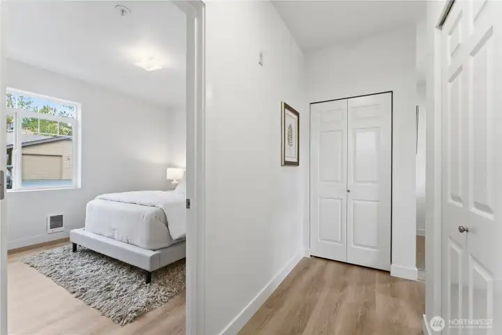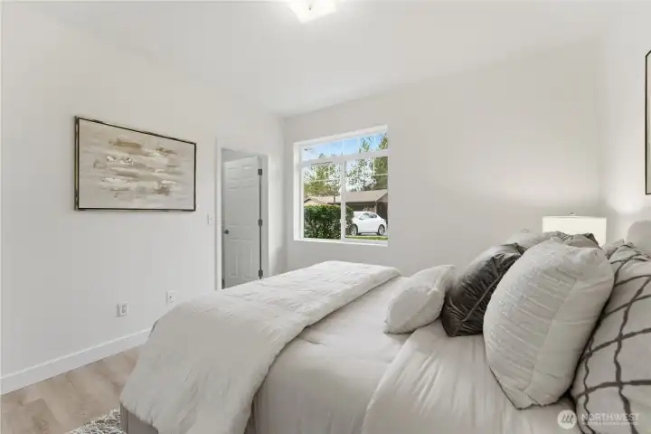 Welcome to this light-filled 1 bed, 1 bath ground-floor condo at Brookwood Place Condominiums. Thoughtfully updated with new LVP flooring, fresh interior paint, and a beautifully refreshed bathroom featuring a new tile shower. The kitchen offers granite tile countertops, maple cabinetry, a large pantry, and a new refrigerator. Recent upgrades include a new roof, new hot water tank, new interior water piping, new fire sprinklers, and a new washer and dryer for added peace of mind. Step out to the covered patio overlooking the serene community greenbelt—perfect for relaxing, with additional storage and convenient ground-level access for pets. HOA dues include water, sewer, and garbage. The community allows up to two pets and has no rental cap. Residents enjoy amenities including a pool, fitness center, sports court, and clubhouse. Ideally located with quick access to Mill Creek Town Center and Bothell, plus easy commuting via Interstate 5 and Interstate 405. Pre-inspected and truly move-in ready!