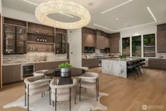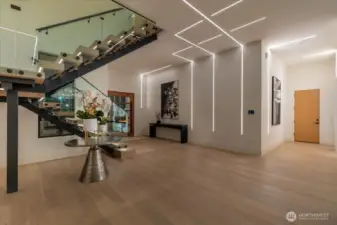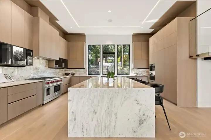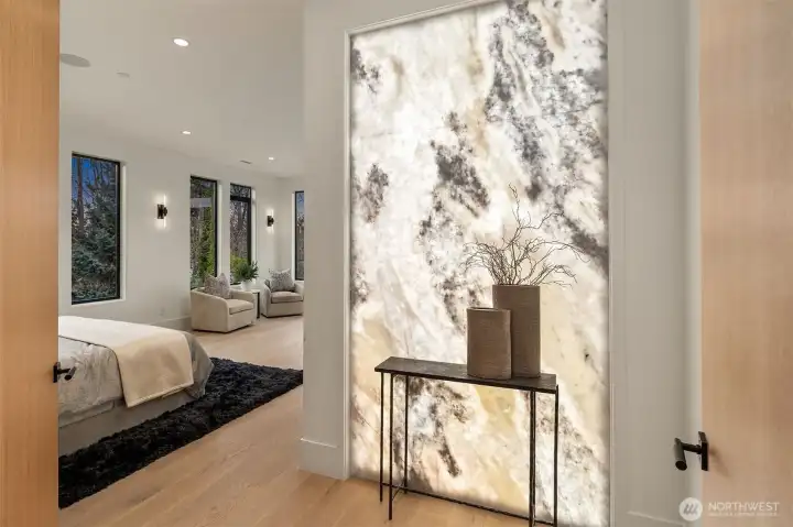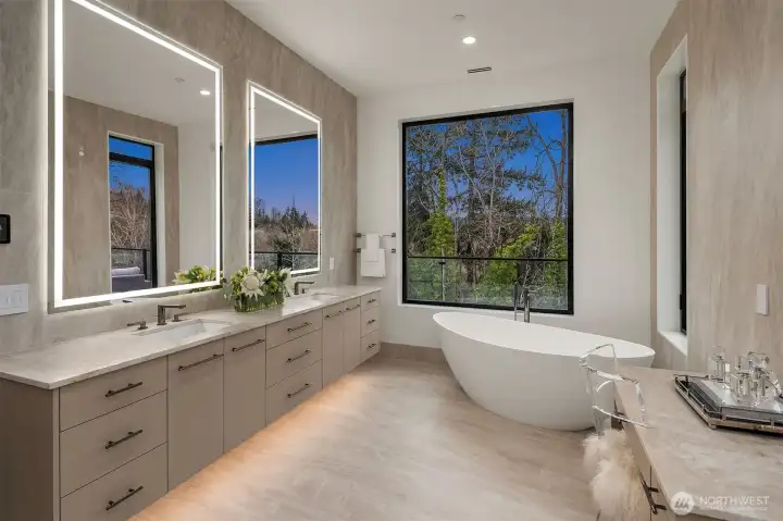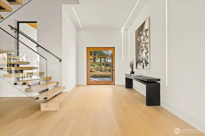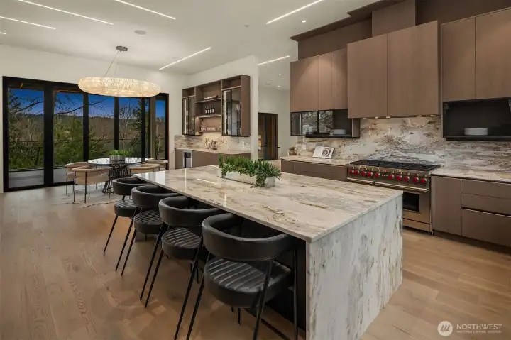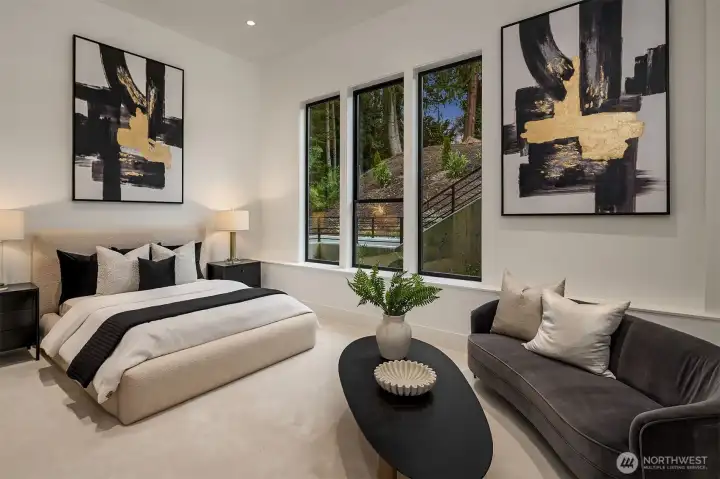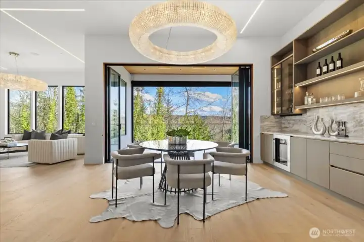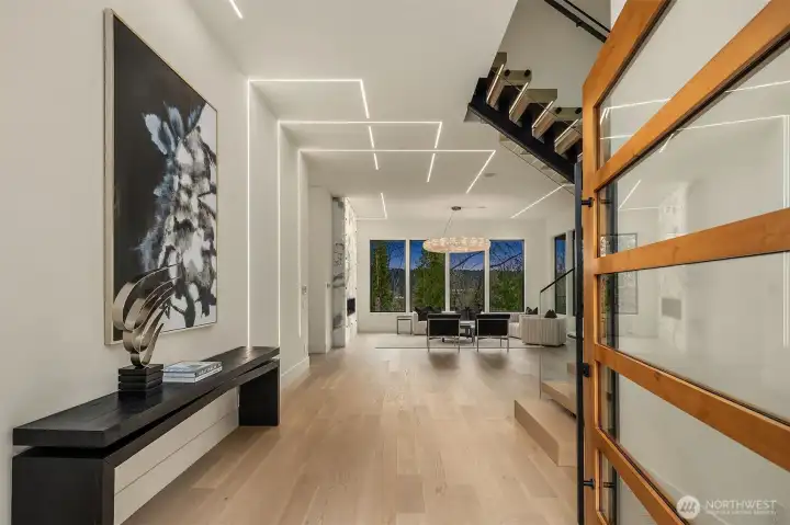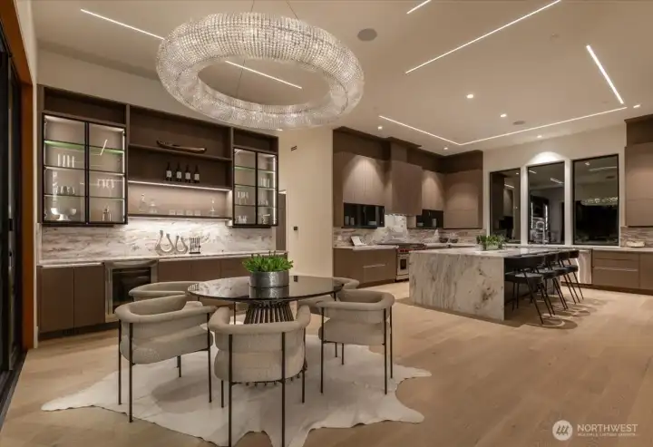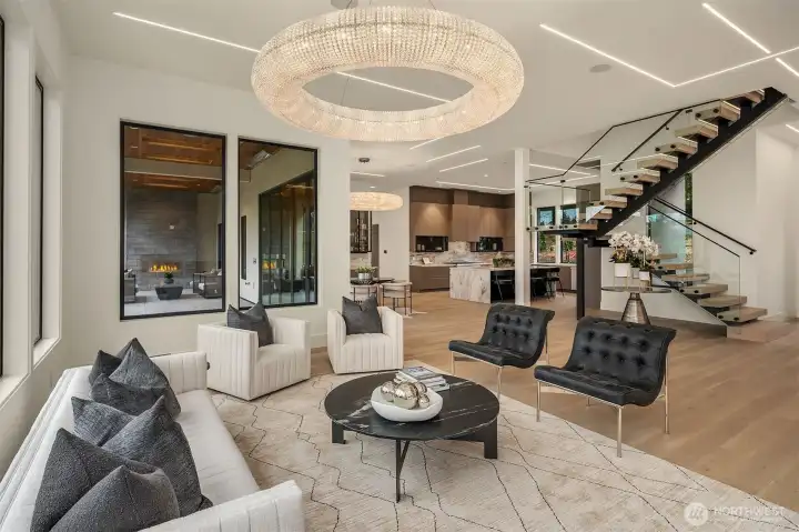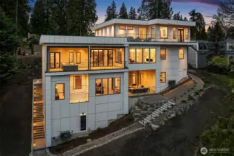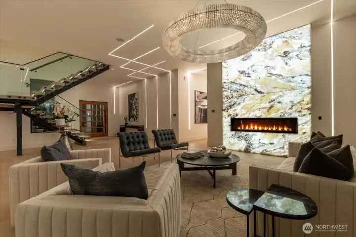 Set in the coveted enclave of Yarrow Point, just moments from the greater Seattle area, this exceptional custom residence offers a living experience more akin to a private five-star retreat. Thoughtfully designed with striking architecture and elevated finishes, it blends global luxury with the natural beauty of the Pacific Northwest. Western exposure paired with breathtaking eastern sunrises fills the home with ever-changing light. A natural stone entry opens to soaring ceilings and wide plank white oak floors, anchored by a translucent backlit marble fireplace. Architectural linear lighting and crystal chandeliers create a refined yet inviting atmosphere. A 14-foot NanaWall connects seamlessly to a 500-square-foot covered deck with a wind-rated automatic screen, delivering effortless indoor-outdoor living. The kitchen features Wolf and Thermador appliances, custom cabinetry with integrated lighting. A temperature-controlled wine room and expansive theatre elevate both entertaining and everyday living. Upstairs, the primary suite offers Italian porcelain slab finishes, a backlit marble niche, spa-inspired smart showers, and a private deck. Fully networked and powered by a Control4 smart system, this home offers effortless control, privacy, and prestige. Outdoors, fireplaces, fire pits, and a one-of-a-kind breezeway beneath the home complete this rare offering. This is not just a home—it’s a statement, come see for yourself!