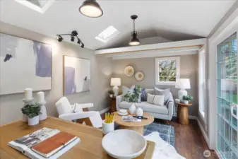 Step into a special piece of Shoreline history and make it your own. Tucked quietly at the end of a private drive, this lovingly cared-for 1906 treasure welcomes you the moment you arrive with its circular drive and charming brick exterior. Hardwoodood floors, timeless trim, and classic doors blend beautifully with thoughtful updates, creating a home that feels both historic and heartwarming. The expansive living room opens seamlessly into an inviting dining area: an ideal space for gathering, celebrating, and simply enjoying life. Just off the kitchen, a cozy family room, generous laundry room and convenient ¾ bath add ease and functionality to busy everyday living. Upstairs, you’ll find three comfortable bedrooms with deep closets and a fully updated bath, designed to honor the home’s character while offering modern comfort. A charming path leads from the home to a delightful additional dwelling—perfect for a peaceful office, creative studio, or private haven. Outdoors, relax on the rooftop deck as the mountains glow at sunset, or unwind in the fully fenced yard featuring mature landscaping, a sprawling lawn, and a sunny patio just off the kitchen...spaces designed to be enjoyed year-round. Come experience the charm, the history, and the heart of this exceptional Shoreline home—ready to welcome its next chapter.