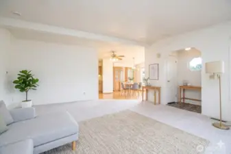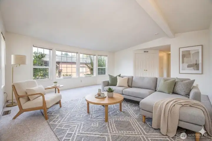Come experience modern living in the highly sought-after 55+ community of James Street Estates, where this spacious 1,546-square-foot residence offers a perfect blend of sophistication and comfort. I am thrilled to present this meticulously maintained three-bedroom, two-bathroom home featuring an inviting open-concept layout accentuated by soaring vaulted ceilings and abundant natural light. The heart of the home is a stylishly updated kitchen equipped with sleek stainless steel appliances and extensive cabinetry, flowing seamlessly into a generous dining area complete with a refined built-in hutch for all your hosting needs. Retreat to the primary suite, a private sanctuary boasting a large closet and an elegant en suite bath designed for relaxation. Outside, the sunny back patio serves as an ideal spot for morning coffee among the established garden beds and lush lawn. Practicality meets convenience with a two-car carport that includes a dedicated bonus room for additional storage or hobby space. Situated on a beautifully situated lot according to Whatcom County records, this property offers a low-maintenance lifestyle with an HOA that covers water, sewer, garbage, and cable. Residents also enjoy exclusive access to the community clubhouse, manicured common spaces, and convenient RV storage. This is a rare opportunity to secure a refined, turn-key residence in one of Bellingham's most welcoming environments.