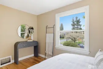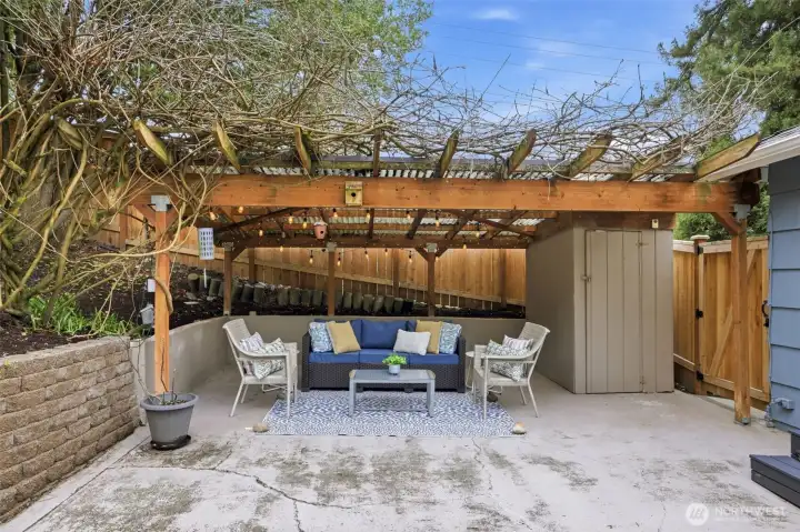 Lovingly maintained 2 bed, 1 bath home in West Seattle's Fairmont neighborhood perched on corner lot with territorial views, large private back yard, in turn-key condition waiting for you to enjoy. An oasis of tranquility in the city with a generous 6,600+ square foot lot, secluded from neighbors with trees, bushes, and fully fenced with plenty of blooming greenery in the back yard. Large shaded patio for summer lounging and entertaining with tool and storage shed for the seasonal gardener. Stunning hardwood floors throughout, double pane windows, craftsman double panel front door with storm screen, Heat & Glo gas insert fireplace, new water heater, modern appliances and mechanical systems all in peak condition. Garage space with one car parking plus storage, an unfinished basement with potential for added living space, workshop, crafts or storage. Minutes to the Morgan and Alaska Junction, and super easy access to all things dining, shopping, amenities West Seattle has to offer. There is a lot to love about this little home. Seller provided home inspection and sewer scope.