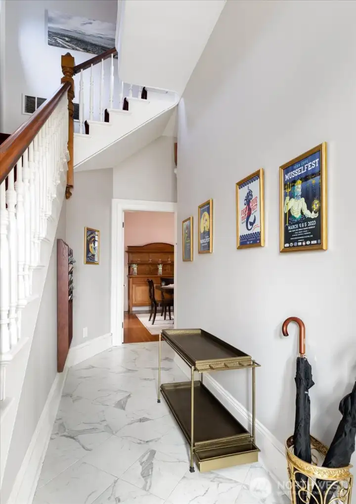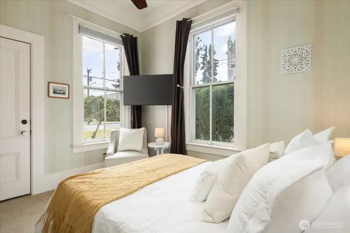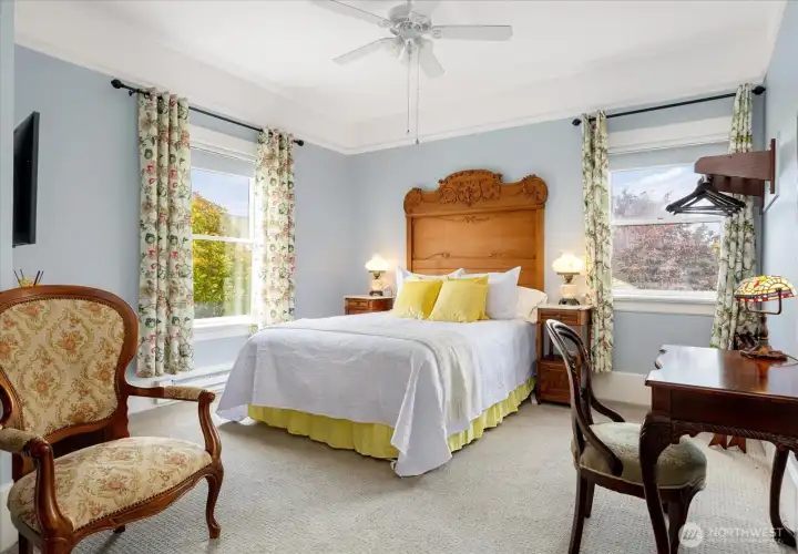 A Turnkey investment opportunity in the heart of Coupeville, just blocks from the waterfront. The iconic 1887 John & Jane Kineth House blends historic character with modern systems and a strong income track record. This unique historic property has been thoughtfully reimagined and is currently operating as a successful short-term rental, with prior use as a bed & breakfast and also as a personal residence. This property offers immediate revenue potential and a wide variety of uses. The elegant Italianate Victorian design features ornate trim, carved corbels, the original fir floors, a grand staircase, and a classic parlor with a marbleized fireplace. The updated electrical, plumbing, and systems provide modern reliability while preserving historic appeal. The flexible layout includes 6 bedrooms, 4 with private en-suite baths—ideal for guest accommodations. A spacious kitchen, a wonderful formal dining with butler’s pantry, and multiple gathering spaces both inside and out support high-occupancy use. Commercial zoning allows for continued STR operation, boutique inn, or mixed-use investment. The prime location just blocks from Coupeville’s waterfront, shops, and dining enhances year-round demand. This is truly a rare opportunity to acquire a high-performing, historically significant property.