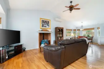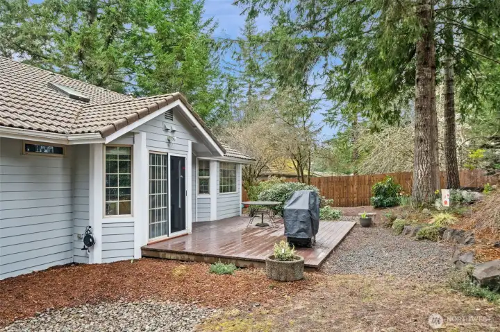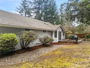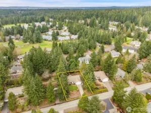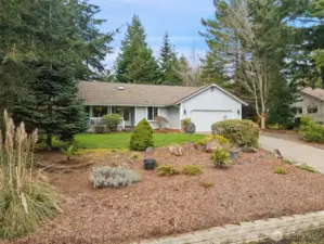 Lakeland Village rambler with a comfortable, functional layout and vaulted ceilings. Spacious living room with propane fireplace opens to a large kitchen featuring abundant counter space and cabinetry. Primary suite plus two guest bedrooms and full guest bath. Enjoy the peaceful and fully fenced backyard from the deck, perfect for entertaining or relaxing. Two-car garage plus dedicated golf cart garage/shop space. Located in the sought-after Lakeland Village community offering a 27-hole PGA golf course, restaurant, tennis and pickleball courts, 50-acre trout-stocked lake, beach, playground, and more. Convenient access to Hwy 3, PSNS, Bangor, and the charming town of Allyn. Welcome home!