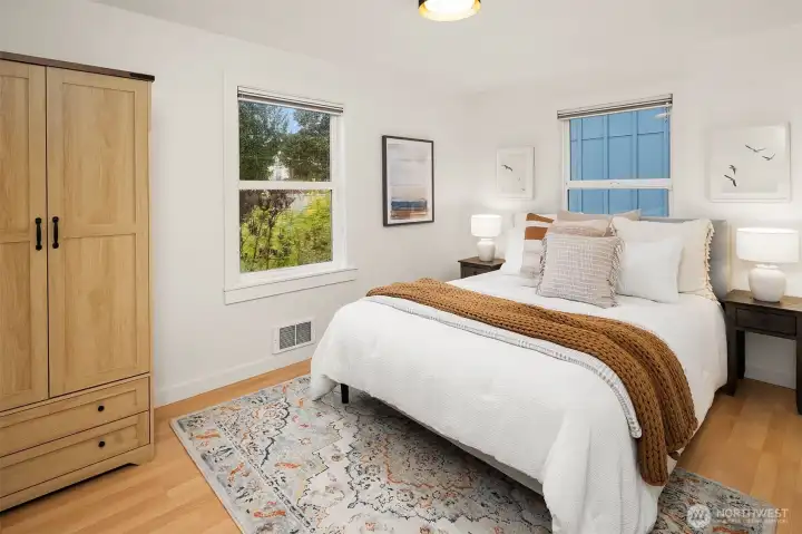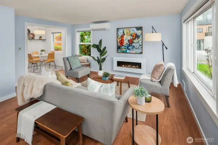 Welcome to your sweet corner of Magnolia, literally. Sunny, endearing, and entirely your own; one-story living on a SW-facing corner lot. It's thoughtfully laid out, easy to love, and easier to maintain. The bright kitchen and office nook overlook the deck and backyard, keeping you connected to the outdoors even on gray days. The living, dining, and kitchen flow seamlessly into one another, the natural center of daily life. When the sun comes out, there's room to spread out: cocktails on the deck, dinner parties on the manicured patio, and a yard that's as beautiful as it is manageable. Inside, a sleek electric fireplace sets the mood when the weather turns. The primary bedroom offers a generous closet you'll actually appreciate. A comfortable second bedroom and a bright bathroom perfectly round out the one-story floor plan. The mini-split AC keeps things comfortable year-round, and the detached shed handles the overflow so the rest of the space stays yours. The lot has room to dream too: DADU potential, a serious garden build-out, or simply an enclosed space for Fido to roam. Then there's Magnolia itself. Your coffee shop is just around the corner. Discovery Park is up the road for forest exploring and beachcombing. The Ballard Locks, Met Market, and Fishermen's Terminal are an easy skip away. Small-town warmth, big-city access. Quiet, convenient, and endlessly charming. The best corner in Magnolia just hit the market: more light, more yard, more breathing room.