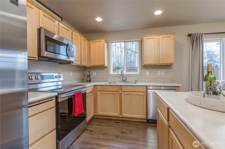 Discover the perfect blend of comfort and convenience in this beautiful move-in-ready condo located in the heart of Lea Hill. Situated at the end of a quiet cul-de-sac for maximum privacy and minimal traffic, this home welcomes you with a covered entry and a thoughtfully designed open-concept floor plan. The main level is built for modern living, featuring low-maintenance flooring throughout. The inviting living room, centered around a cozy fireplace and bathed in natural light from large, bright windows, flows seamlessly into the dining area and kitchen. Home chefs will love the functional kitchen, complete with a center island for extra prep space, a walk-in pantry, and stainless steel appliances that all stay with the home. Step through the dining room slider to enjoy your own private, fully-fenced yard - a rare find for condo living - complete with a patio and an included outdoor table and chairs. Upstairs, retreat to the spacious primary suite featuring dual sinks, a walk-in closet, and a private toilet/shower room. The upper level also boasts two additional bedrooms, a full hall bath, and a versatile loft space that’s perfect for a home office, gym, or play area. With an upstairs laundry room and an attached 2-car garage with ceiling storage racks, this home has it all. Enjoy easy freeway access and a prime location within walking distance to schools, shopping, and dining. This Lea Hill gem is ready for you to call it home!