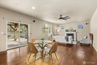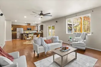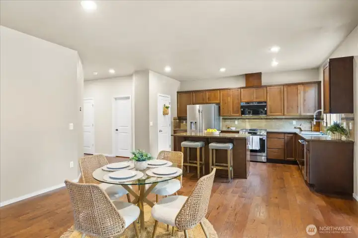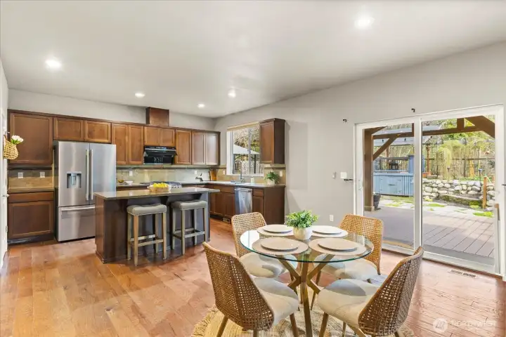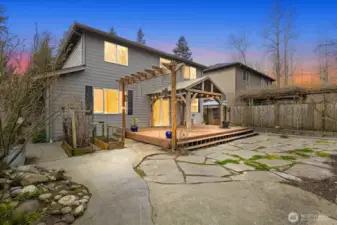 Warm and inviting, this beautifully maintained home features an open layout designed for comfort, connection, and everyday living. The covered front porch welcomes you into the 3 bed/2.5 bath home with plenty of room to spread out. Open and airy kitchen boasts granite countertops and stainless appliances- including a gas range and smart hood vent. Large island with bar seating, plentiful cabinets and additional deep pantry. The great room offers a gracious dining space, plus living room anchored by a gas fireplace. Sliders leading out to the amazing covered porch and backyard oasis, perfect for entertaining! Upstairs, a versatile loft space offers flexibility for office, media, or play. Generous primary suite overlooks the backyard and includes a walk-in closet and ensuite 5 piece bath. Two additional bedrooms, full hall bath and upstairs laundry room. The backyard is a true private retreat with a covered trex deck, fire pit, fruit trees, garden spaces, and gazebo—a dreamy space for relaxing or entertaining. The fully fenced backyard backs to a greenbelt, allowing for a peaceful setting. Across the street is also a greenbelt for added privacy! New hot water heater, nest thermostat, smart garage door opener, garage storage, under the stairs storage, doggy doors! Lake Stevens School district! EZ commuting to Everett, Lake Stevens, Marysville. Close to Costco, shopping and dining! Turn-Key home ready for new owners to enjoy and make memories!