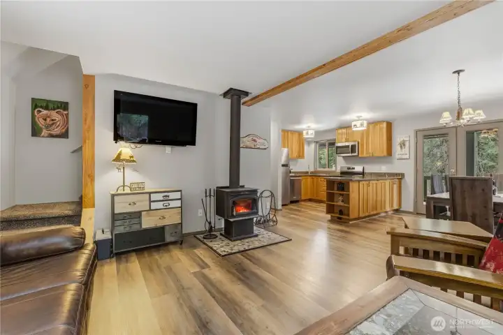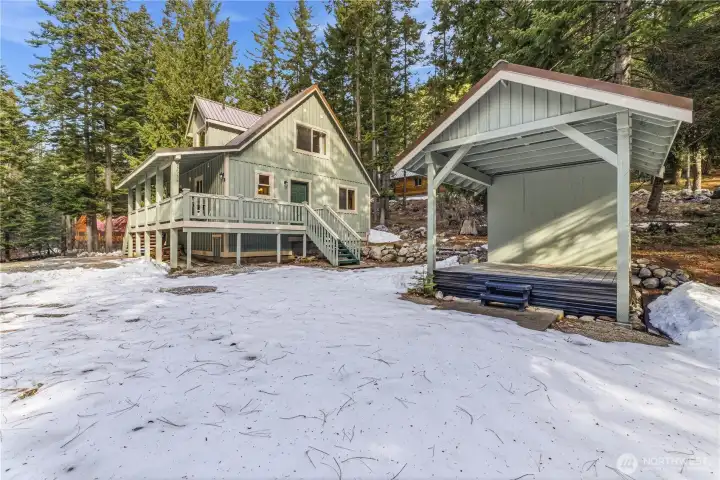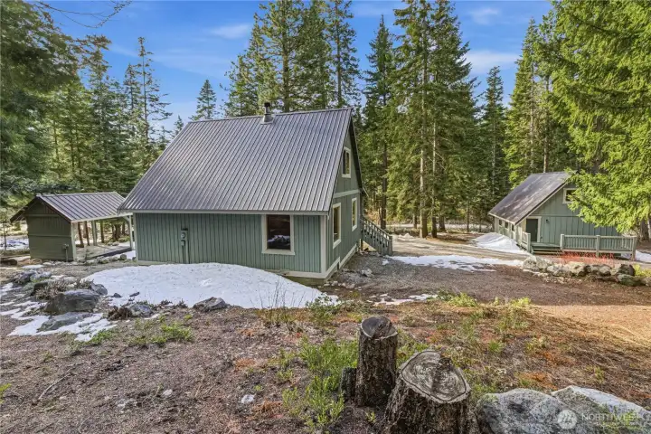 Embrace the quintessential mountain lifestyle in this charming 1,208-square-foot cedar-walled retreat, nestled on a peaceful 1.01-acre lot. This fully furnished home offers an open-concept design where the kitchen and living areas flow naturally together, creating an inviting space for gathering. Large windows throughout invite an abundance of natural light and frame beautiful views of the surrounding pine trees and the night sky from the bedrooms. Warm up by the cozy wood stove or step out onto the front porch to enjoy your morning coffee in the crisp mountain air. The property features a spacious garage with a versatile bonus room, perfect for hobbies or additional storage. Located on a quiet road with a wonderful community feel, you are perfectly positioned for year-round recreation. Enjoy quick access to Stevens Pass, Lake Wenatchee, and Kahler Glen Golf & Ski Resort, along with endless trails for hiking, snowmobiling, and dirt biking. Whether you are hosting a campfire under the stars or relaxing in the sun-drenched living area, this home offers a comfortable, casual environment that feels like a year-round vacation. Deeded water access to Nason Creek.