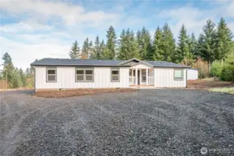 Brand new triple-wide manufactured home on 2.17 acres offering space, comfort, and flexibility. This 4-bedroom, 3 full bath home features an open floor plan with vaulted ceilings, creating a bright and airy living space ideal for everyday living and entertaining. The spacious primary suite includes a sitting area, perfect for a private retreat. Dedicated office provides work-from-home convenience and highspeed internet is available with Xfinity (not installed yet). The property also includes a large pump house that has been set up for office use, offering additional workspace or potential for hobbies. Plenty of room to build a shop, park equipment, or expand to fit your needs. Conveniently located just minutes from I-5 for an easy commute while still enjoying a peaceful, rural setting.