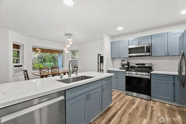 Welcome to this beautiful 4 bedrooms, 2.5 baths on a large corner lot. Featuring quartz countertops, subway tile backsplash & stainless steel appliances in the kitchen. All bathrooms w/ quartz counters & tile shower surrounds with Luxury Waterproof Vinyl Plank flooring throughout the house. The primary suite has a double vanity + large walk-in closet. Privately fenced yard w/ new covered deck and fruit trees. New 50 year roof, fence posts and gate installed. Walking distance to school or bus stop. Quick drive to Picnic Point Beach Park, Boeing, main highways & park-n-rides.