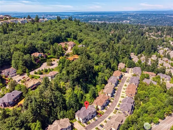 Welcome to this beautifully bright SATOMI townhome in desirable Lakemont! This home features soaring vaulted ceilings and an open-concept layout that creates a light, airy, and inviting atmosphere. The kitchen is thoughtfully designed with granite countertops, gas range, a functional prep island, and a dining area overlooking peaceful greenbelt views. Custom bamboo flooring enhances both the main level and the primary suite, adding warmth and style throughout. Conveniently located near I-90, offering an easy commute to the Eastside and Seattle. The home also includes a spacious tandem 2-car garage with additional storage space. Enjoy the benefits of a well-managed HOA with a strong owner-occupancy rate 75%, with no rental cap. Monthly dues include water and sewer. Ideally situated close to parks and scenic trails, perfect for outdoor enthusiasts. Award winning Issaquah school district! Pre-inspected for peace of mind.
