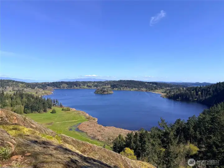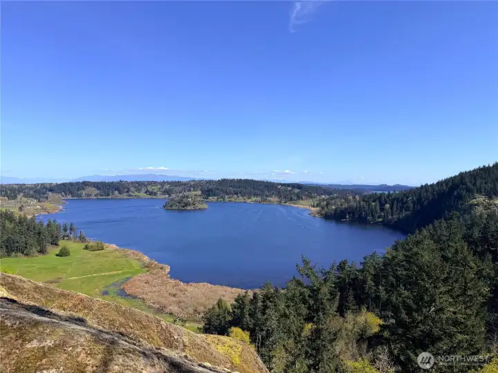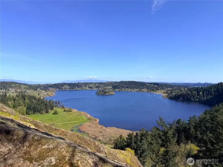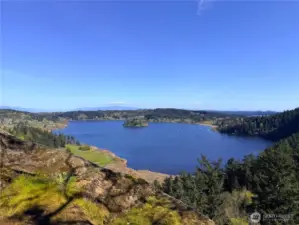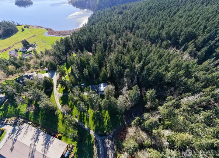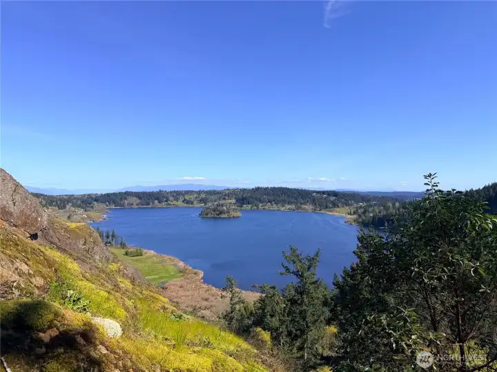 Discover an exceptional opportunity to own 23 private, wooded acres with breathtaking elevated views of the surrounding waterways, islands, and rolling hills. This stunning parcel is nestled between Lake Campbell and Lake Trafton, and borders state park land to the South. This affords direct access to miles of walking trails, as well as Pass Lake via the John Tursi Trail. Mature evergreens provide both privacy and a serene Pacific Northwest setting. Perched above Lake Campbell, the property captures expansive vistas of nearby bays and inlets, with sunlight shimmering across the water and distant mountain backdrops to the East. Whether you're envisioning a custom home, a peaceful retreat, or a long-term investment, this land delivers a truly inspiring setting. Access is possible via either of two established easements, leading you into a tranquil environment that feels miles away from it all—yet remains within reach of nearby amenities. The varied terrain includes a dramatic bluff with incredible views, and offers potential for creative site planning, view enhancement, and selective clearing to maximize outlooks. An old gravel roads meanders through the property, which also boasts a natural spring as well as a a seasonal stream. Surrounded by nature and neighboring estate-style properties, this is a rare chance to secure a sizable piece of land in a highly desirable area known for its scenic beauty and quiet lifestyle.