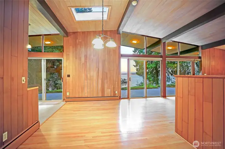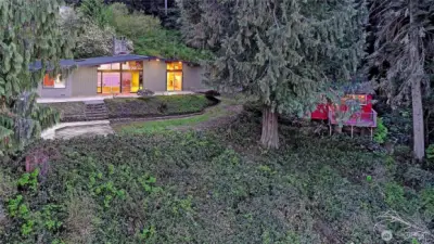 This mid-century modern retreat sits on a rare double lot at the water’s edge, offering 200 feet of private, medium-bank waterfront with exceptionally easy access to your own PRIVATE sandy beach. Designed to frame the surrounding natural beauty, the home captures sweeping mountain and sound views from nearly every room through expansive windows, creating a seamless connection between indoor comfort and the outdoors. Set on more than 6 acres, the property delivers a remarkable sense of privacy and space. Mature landscaping surrounds the home, enhancing the feeling of seclusion while keeping the shoreline just steps away. An immaculate 608 sq ft fully equipped cabin provides ideal overflow accommodations or a peaceful guest hideaway. Open living spaces flow effortlessly to expansive outdoor areas, including a generous patio perfect for gathering around the fire and taking in the ever-changing coastal scenery. Whether you’re whale watching, beachcombing, kayaking, or birding, the best of island living unfolds right in your backyard. A rare combination of modern design, acreage, and truly effortless beach access—this is a waterfront lifestyle that’s hard to match.