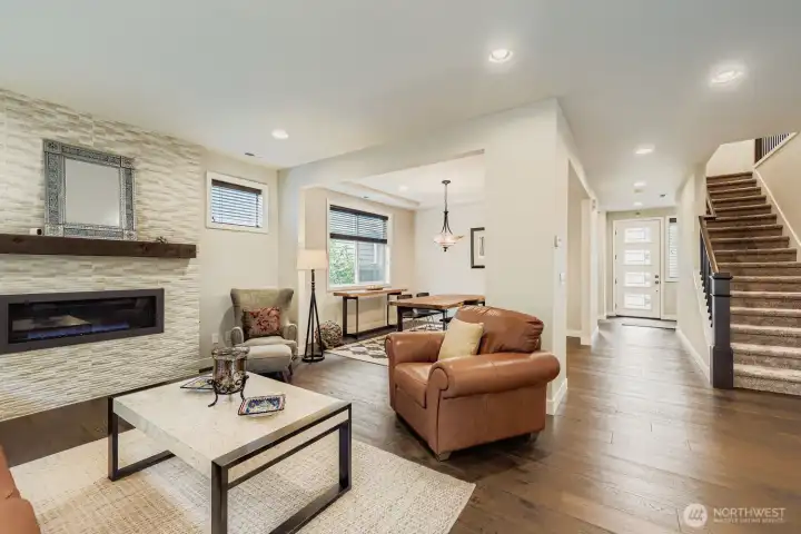 Amazing location. Rare resale in Meritage Ridge. Nestled on a quiet cul-de-sac lot overlooking the open space with views to the S/E, just up the hill from Totem Lake mall. This stunning 2540 sqft, 4 bed 2.75 bath light filled home welcomes you in. The flowing main floor boasts a private bedroom & 3/4 bath, a spacious great room with gas fireplace and large windows overlook the back garden, gourmet kitchen with walk in pantry &, and the inviting dining room. Covered deck has access to the patio area. Upstairs you will find the secluded primary suite with Spa like bath. The loft with big windows is open to the work area with desk, 2 more large bedrooms & full bath. Laundry room has built ins. minutes to Redmond, Bellevue, Seattle. A must see.