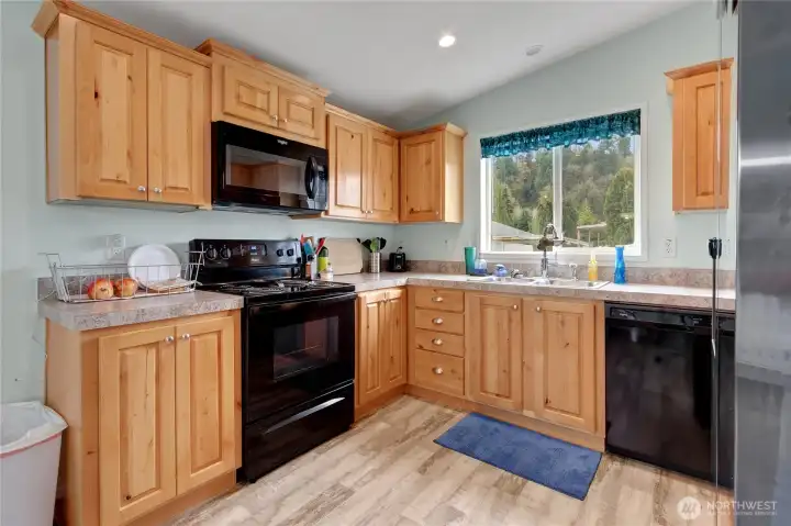 Welcome home to this charming 2019 model, 2-bedroom plus den, 1.75-bath home located in desirable 55+ community, Lone Cedar in the Puyallup Valley. The open kitchen and dining area feature durable laminate flooring that continues through both bathrooms and the utility room for easy maintenance. Kitchen offers great cabinet and counter space too. Living room is bright and open with vaulted ceilings. The primary bedroom includes a private bath with a walk-in shower. There is also a second bedroom and full bath for guests. Plus a cozy bonus room provides flexible space for a home office, hobby room, or den. The utility room offers additional storage and exterior access. Outside, enjoy a covered carport for 2 spaces, nicely sized private yard, newer Trex deck and two storage sheds, one of which is a newer 8x12 Tuff Shed. Ideally situated close to freeways, shopping, walking trails, dining, and medical facilities—this home offers comfortable living in a great location.