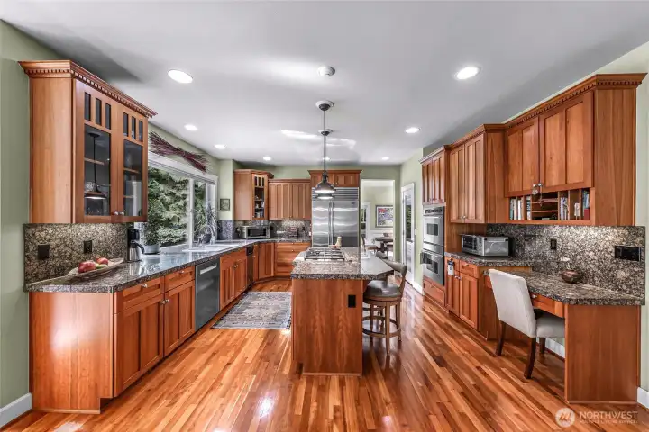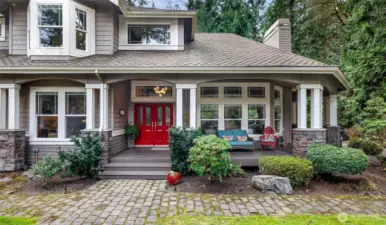 Beautiful Craftsman home in Woodinville set on nearly 2 acres of lush, park-like grounds. Discover your own private retreat—an oasis of tranquility and natural beauty. Ideal for remote work, this home showcases exceptional custom craftsmanship, including cherry woodwork, rich hardwood floors, and detailed millwork throughout. The inviting kitchen and family room are perfect for gathering, featuring granite countertops, a Sub-Zero refrigerator, a double oven, and a cozy gas fireplace. Also, there is a newer furnace, A/C, hot water heater, and security system. A spacious 3-car garage offers additional shop space plus a bonus nook ideal for a home gym. Enjoy outdoor living on the covered porch, tend to your fenced garden protected from wildlife, and unwind in the hot tub surrounded by serene woodland views.