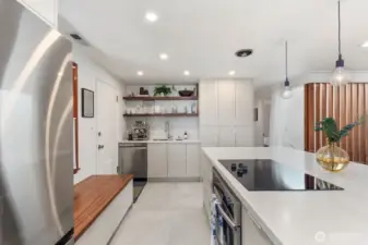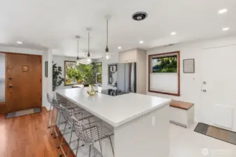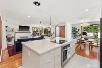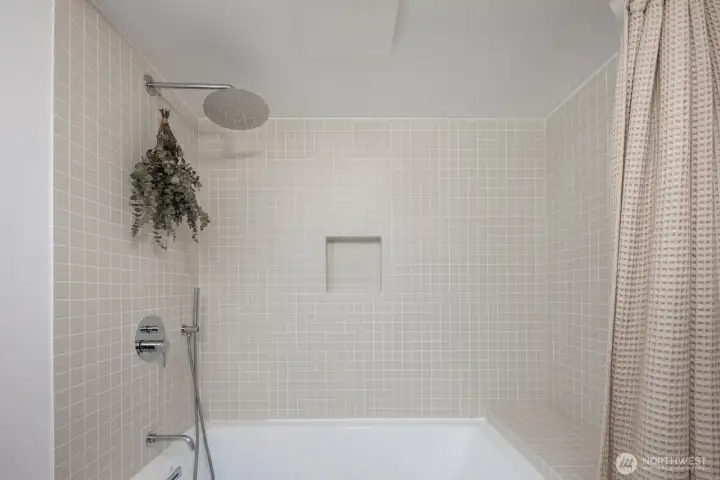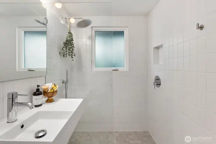 Thoughtfully reimagined by an architect and designer, this stunning mid-century brick home blends timeless charm with modern updates in the heart of Maple Leaf. Ideally located near Ravenna, Green Lake, Roosevelt, UW, and Maple Leaf Park, with convenient access to bus routes and light rail at Roosevelt and Northgate stations. The main level features refinished hardwoods, a light-filled living room with fireplace, and design features including a custom slat wall, and a new stair skylight. Two bedrooms and a beautifully remodeled full bath provide comfortable main-floor living. The 2023 kitchen boasts custom cabinetry and new Samsung appliances. The fully finished lower level adds a spacious bedroom, full bath, Rec/TV room, mudroom, and laundry with new washer/dryer. Major upgrades include new roof, electrical, plumbing, insulation, HVAC, and water heater. Outdoors, enjoy a redesigned yard with new lawn, pavers, native plantings, and cedar fence. Includes a one-car garage. Surrounded by grocery stores, shops, restaurants, and lovely neighbors that create the community you are looking for. This turnkey home offers style, function, and flexibility.