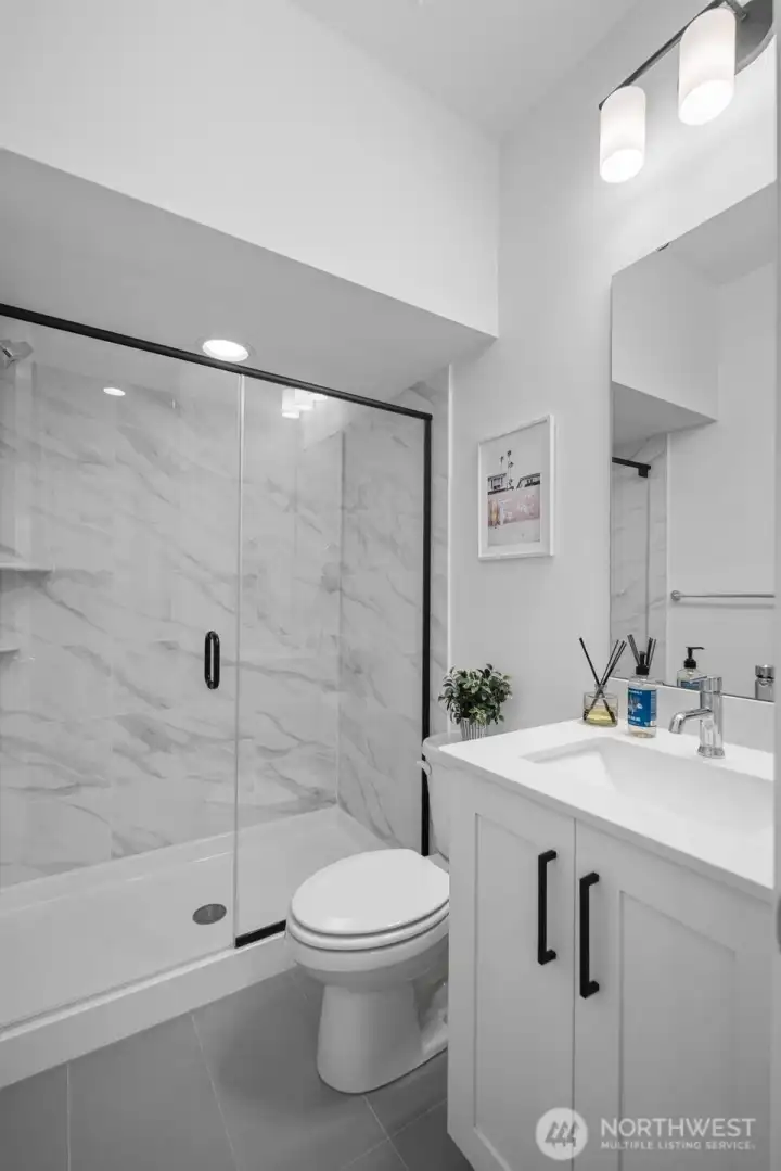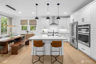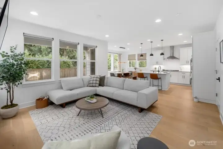 Nestled in Meadowdale, this turnkey 5-bed modern home showcases light-filled interiors with wide-plank oak hardwoods and a thoughtfully designed open-concept layout. A cozy gas fireplace anchors the main living area. Chef-inspired kitchen features a built-in 4-burner gas range with hood, stainless steel appliances, subway tile backsplash, & crisp white shaker cabinetry. A large island with sink & seating offers the perfect gathering space, while the adjacent dining area opens to a covered patio, ideal for year-round entertaining. Fully-fenced & private backyard. Thoughtful details include stylish modern lighting & hardware, AC, & versatile bonus area off the landing. All beds are generously sized, including the spacious primary suite with a luxe 5-piece ensuite featuring dual sinks, oversized soaking tub, walk-in shower, & custom built-in closet storage. 2-car attached garage + driveway parking. Bright, open, & move-in ready. A short stroll to Meadowdale Beach Park & near I-5, Alderwood Mall, Paine Field, & Boeing.