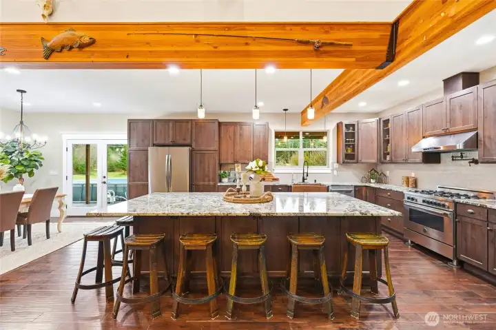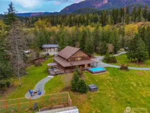 Discover unparalleled natural beauty in this stunning, custom-built luxury farmhouse in the heart of Sky Valley! Set on 8.3 storybook acres with 360° breathtaking mountain views, no detail was overlooked in the construction of this true legacy property. The chef's kitchen is a culinary dream, featuring a hand-picked Bertazzoni range imported from Italy, custom cabinetry, slab granite countertops, central island with bar seating for 8 & industrial pantry. The open floorplan connects the main living areas seamlessly while ushering in abundant natural light through nature-filled picture windows. The Great Room is highlighted by soaring ceilings, exposed beams, rustic accents & a centerpiece river rock fireplace, all underscored by gorgeous wood floors. 3 bedrooms + office on the main floor along with 2 full baths provide multigenerational living options. The 2nd level features an impressive Primary Suite w/ 5-piece bath, radiant floor heating, dressing room & espresso bar, as well as a home theater/ family room & 6th bedroom. The upper floor is a private apartment complete w/ 2nd kitchen, living area & 3/4 bath. Designed for maximum comfort & efficiency, this home has too many features to list: full wraparound porch, deck, gazebo, firepit, swimming pool, jacuzzi, enclosed chicken coop & garden areas, greenhouse, mini orchard, open parklike lawns, 50x40 detached shop w/ cold storage, 98% eff propane heat pump & on-demand H2O—and so much more. A once in a lifetime opportunity!