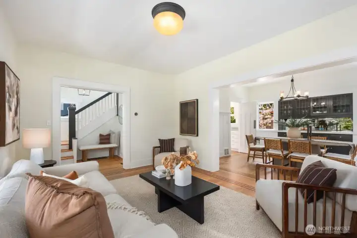 Charming storybook craftsman on a picturesque, tree-lined street in Upper Queen Anne! This delightful home seamlessly blends classic period details with thoughtful updates. The main level welcomes you with refinished hardwood floors, tall ceilings, a bright and spacious living room with fireplace, a formal dining room with built-ins, and kitchen with granite countertops. Upstairs, you’ll find three comfortable bedrooms and a full bath. The fully finished lower level offers a large family room, bedroom, full bathroom and convenient laundry area. Step outside to a private backyard oasis featuring a natural stone patio, perfect for outdoor gatherings and relaxation. Major upgrades include new roof, electrical, plumbing, insulation, heat pump, AC, and water heater. Ideally located within walking distance to Upper Queen Anne’s shops, restaurants, schools, and more. Your peaceful city retreat awaits!