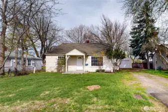 Two-bedroom, one-bath cottage on oversized lot served by Blalock District 14 water in the College Place school district. Two oversized French pane windows let in lots of natural light into this cottage on a quiet street. Original wood floors in the living room and bedrooms. Electric service panel installed in 2018. Trane XE central AC, Trane XR 80 gas central furnace, and Smith gas water heater in the basement were also installed in 2018 by College Place Heating and Air Conditioning.