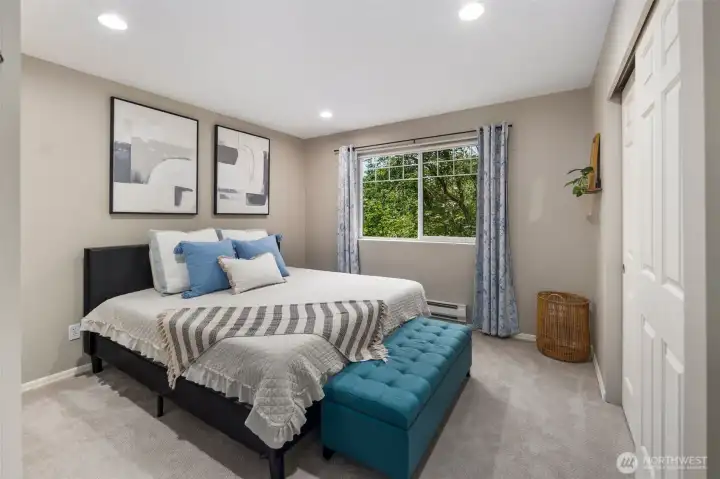 Welcome to this beautifully updated 2-bed, 2-bath condo in Sammamish Hills! Enjoy an open layout with a cozy wood-burning fireplace, spacious living and dining areas, and a private deck with peaceful wooded views. The modern kitchen offers stainless steel appliances and slab granite counters. The primary suite features dual sinks and tile finishes. Additional highlights include in-unit laundry, covered parking, a pet-friendly community, and no rental cap. Located in the Issaquah School District with quick access to I-90, Issaquah, Bellevue, and Seattle. A well-rounded home in a prime Eastside location.