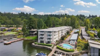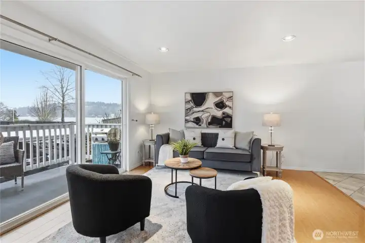 Welcome to Misty Cove - this light and bright unit with southern exposure, featuring 2 bedrooms & 1.75 baths, is ready for you. A nicely appointed home with fresh paint, hardwood floors throughout and remodeled kitchen & bathrooms. Enjoy the panoramic views of Lake Washington from the deck. Common amenities include a lakeside pool, dock, and sauna. Get ready to enjoy a summer on the lake. The eagles nesting nearby is something to see. The 42 mile multi-use Eastrail crosses the driveway and when finished run from Renton to Snohomish. The nearby park & ride is under construction - this will be a transit hub with busses running every 10 minutes. Don't worry, Ripley Lane will be completely redone with sidewalks etc. Come see this home! it's centrally located off 405 with easy access to SeaTac, Bellevue, Issaquah and Seattle.
