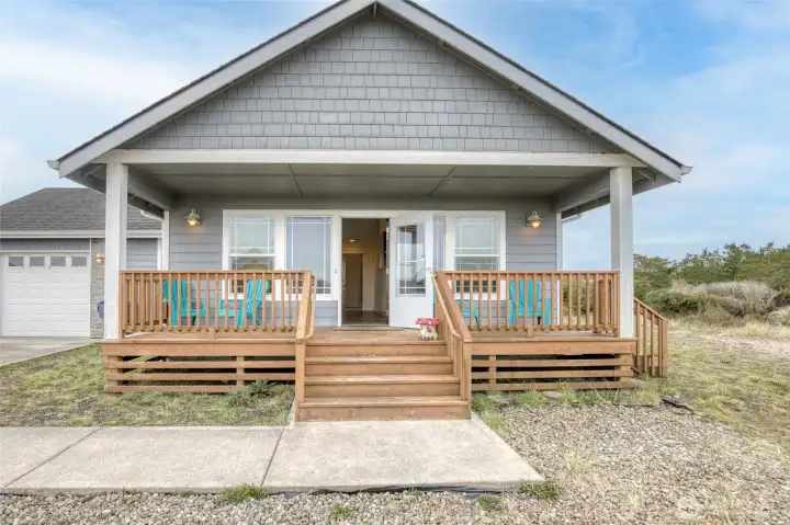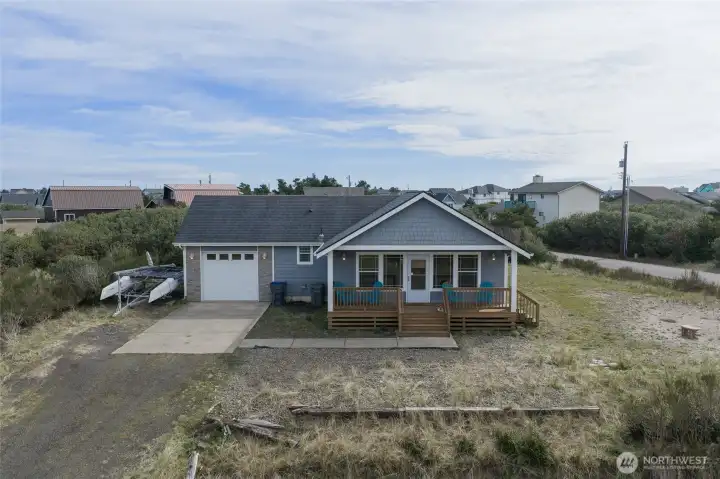 This lovely two bedroom home is ready for your weekends away and summer vacations or Perhaps you are ready to retire to the beach? The vaulted ceilings and large windows give the space a Bright open feel and the well planned Kitchen has lots of storage. The primary Suite has a walk in closet and full bath. Guest bedroom, full guest bath, Laundry area and an attached single car garage make this cute beach cabin a must see. Sit on the covered front porch and enjoy the large corner lot as you plan your Garden while listening to the mighty pacific.