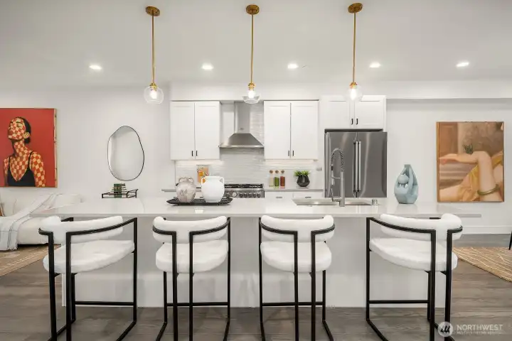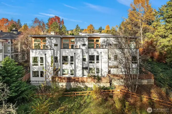 Low HOA, move-in ready luxury townhome at Hiatt Park. This 3 bed, 3.5 bath home features a bright open-concept floor plan designed for modern living and entertaining. High ceilings and large windows provide abundant natural light throughout. The chef’s kitchen showcases a grand-sized island, white quartz countertops, premium Italian appliances, and a spacious walk-in pantry. Two primary suites offer large walk-in closets and luxury finishes, including custom lighting and tile shower surrounds. Flexible third bedroom or office ideal for remote work or guest. On-demand tankless water heater, EV charging ready, and double car garage. Conveniently located in the heart of Kenmore near the Burke-Gilman Trail, Lake Washington, shops, dining, everyday amenities, and within the highly sought-after Northshore School District.