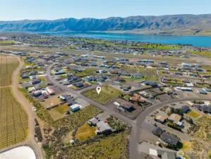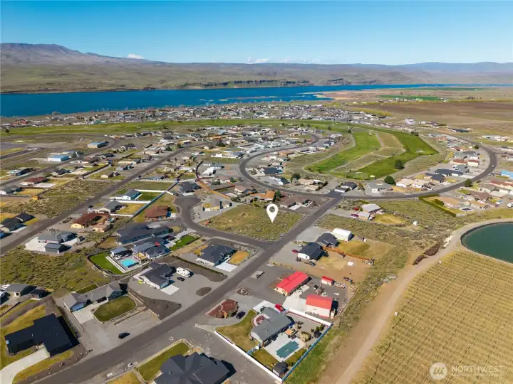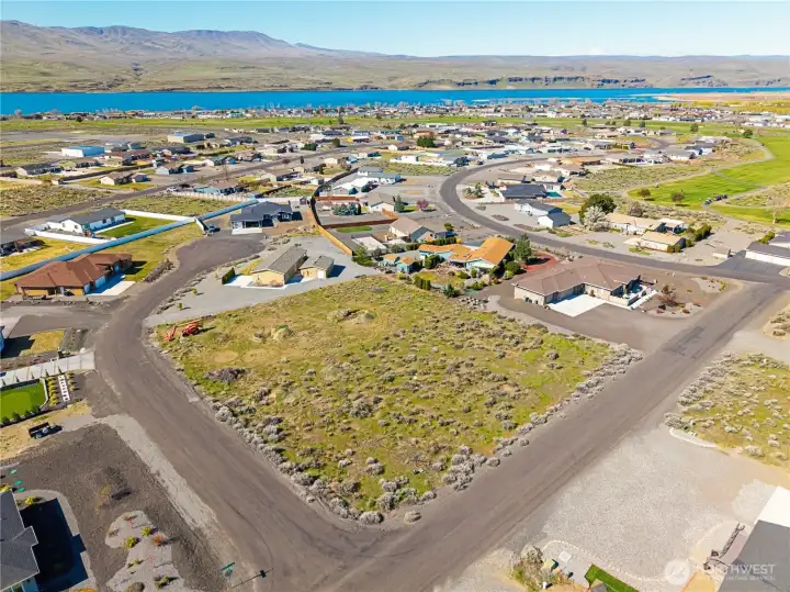 An exceptional opportunity to own one of Desert Aire’s premier view lots. This west-facing, half-acre parcel captures breathtaking sunset views over the golf course, Columbia River, and surrounding mountains, positioned at one of the highest points in the community. Nestled on a private cul-de-sac, the setting offers both tranquility and expansive, unobstructed scenery. The property features an approximate 10 foot elevation drop from front to back, creating exciting potential for additional storage, a man cave, or even a possible daylight basement. Previously dug perk test holes indicated potential for a 3 bedroom home, with room to accommodate a 4 bedroom design (buyer to verify). Power and water are conveniently available at the street. The owner is a builder and available to build a custom home tailored to your vision, offering a seamless path from purchase to completion. Desert Aire is one of Central Washington’s most sought-after recreational communities, featuring an 18-hole golf course, private airfield, boat launch, pool, fitness center, tennis courts, parks, and miles of scenic trails. Whether you envision a refined full-time residence or a luxurious retreat, this rare offering combines lifestyle, location, and opportunity in one remarkable property.