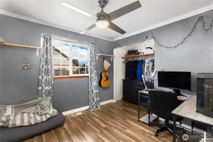 Welcome to this inviting single-level home offering comfort, functionality, and a convenient location. Featuring 3 bedrooms, 2 bathrooms, and an office, this home provides flexible space for everyday living, working from home, or hosting guests. The living room is warm and welcoming with a cozy wood-burning fireplace, while the additional family room just off the kitchen creates even more room to relax or gather. The spacious primary bedroom includes its own bath for added convenience. Situated on an oversized lot, the fully fenced yard offers plenty of room for outdoor enjoyment, whether that’s gardening, play, or simply unwinding. A finished storage building and covered wood area provide extra versatility and practical storage solutions. Ideally located just minutes from the freeway, shopping, dining, and local amenities, this property combines comfort and space—making it a fantastic place to call home.