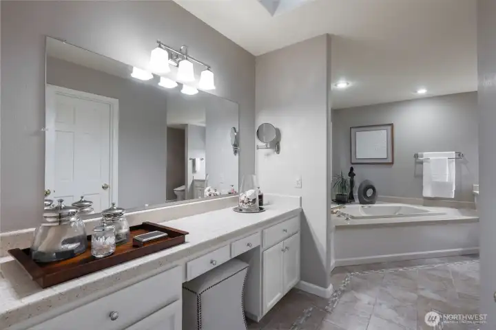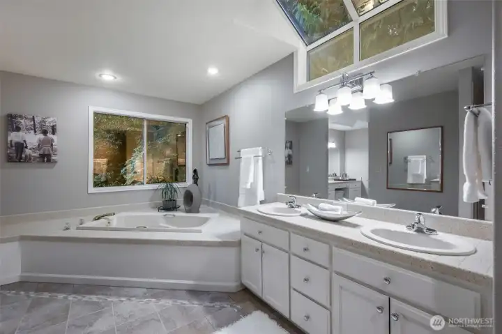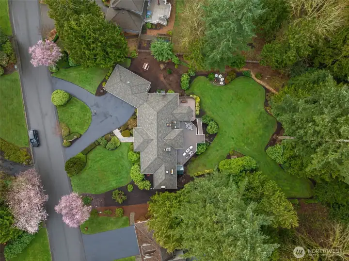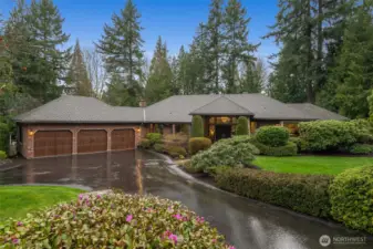 Sprawling estate in the prestigious Bristol View community of Grousemont, where elegance meets everyday functionality. A coveted main-level primary suite offers a serene retreat with dual vanities, soaking tub, walk-in shower, and spacious closet. The updated kitchen features granite countertops, custom tile backsplash, newer stainless steel appliances, and abundant storage, seamlessly opening to the inviting family room with gas fireplace. Enjoy tranquil mornings on the private deck overlooking lush, tree-lined grounds. A formal living room with dual wood and gas fireplace adds warmth and sophistication. The lower-level features two additional bedrooms, a full bathroom, & rec room - an ideal space for entertaining or relaxing. Outdoors, unwind in the secluded hot tub or gather around the fire on long summer evenings. Mature landscaping with native plantings enhances the peaceful, park-like setting. A custom-built treehouse, complete with swings, zip line, and winding paths, creates a truly one-of-a-kind retreat. 50 year presidential roof, Northshore school district.