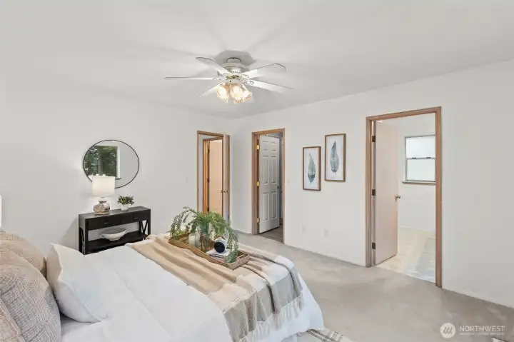 Space, privacy, and location—this Bonney Lake home truly checks all the boxes. Situated on a spacious lot with a peaceful, private setting, this home has been thoughtfully updated and is ready for its next chapter. Enjoy all new interior paint and a fully reimagined backyard, complete with a newly installed retaining wall with conduit in place—ready for power! The yard has been leveled and is ready for your vision—whether that’s a sport court, detached shop, garden retreat, or outdoor entertaining space. Inside, the tri-level layout offers a comfortable and functional flow with room for everyone. The formal living room welcomes you with a cozy wood-burning fireplace, while the dining area connects seamlessly to the kitchen—perfect for both everyday living and hosting. The lower level provides incredible flexibility with a spacious area ideal for a family room, game room, or media space. Upstairs, you’ll find three bedrooms, including a relaxing primary suite with a walk-in closet and ensuite bath. Additional features include vaulted and tray ceilings, wainscoting, dedicated laundry room, A/C, and a generator for peace of mind. The 3-car garage with an extra-tall door offers excellent space for RV or boat storage. You’ll enjoy a lifestyle surrounded by natural beauty with easy access to Lake Tapps, parks, trails, and outdoor recreation. With nearby shopping, dining, and convenient access to Hwy 410 for commuting.