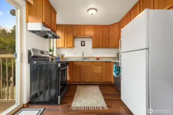 Welcome to this charming end-unit condo that offers the feel and privacy of a townhome, tucked into a peaceful, tree-lined cul-de-sac in sought-after Mukilteo with partial views of the Olympics and Puget Sound. Part of an intimate 16-unit community, this home is surrounded by well-kept residences and a serene, park-like setting. The main level features a functional kitchen with an inviting eat-in dining space that flows seamlessly to a private deck overlooking a lush greenbelt—perfect for morning coffee or relaxing evenings. Upstairs, you’ll find a spacious primary bedroom along with a versatile second bedroom ideal for a home office, workout space, or guest room. The light-filled living area boasts large windows and SW exposure, creating a warm and airy atmosphere throughout. Step outside to the generous deck, designed for year-round enjoyment and easy entertaining. Additional highlights include a one-car garage with a new garage door and convenient extra parking right out front. Ideally located just minutes from local dining, shops, downtown Mukilteo, Boeing, Paine Field, scenic trails, and the ferry—this home combines comfort, convenience, and lifestyle. Don't miss the opportunity to make it yours!