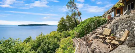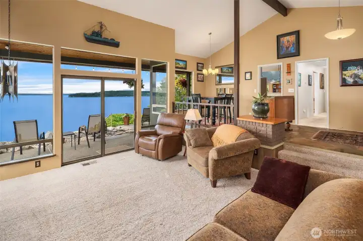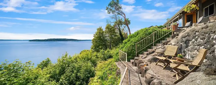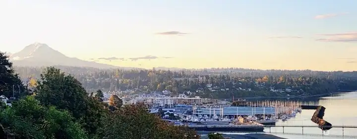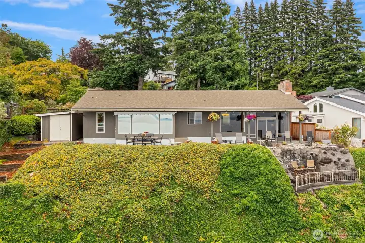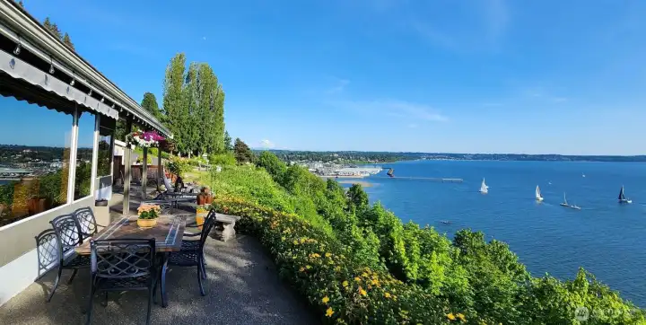 This exceptional mid-century, single-level beauty presents a rare opportunity to own an unparalleled expansive view property in South Puget Sound. Perfectly positioned in a private serene setting, this beautifully maintained 2-bedroom 2-bath rambler showcases unobstructed 180 degree vistas which includes Mount Rainier, partial views of the Olympic Mountain Range, Vashon Island, Point Defiance, Commencement Bay & Dalco Passage. WOW! The coveted southwest exposure captures the ever-changing shimmer of our marine waters and the big sky. Gracious windows invite the natural beauty indoors, filling the living spaces with light and framing the breathtaking surroundings. A unique mid-century brick & metal fireplace with matching custom designed hanging light fixture adds to this marvelous vintage vibe. Priceless clear cedar walls & ceiling anchors the living room, creating warmth and charm. The primary suite offers a peaceful retreat. Open kitchen to family room keeps everyone in the loop & fun. Lush, mature landscaping addresses the viewing patio with water feature while providing privacy and enjoying the stunning backdrop. Relax while you let the sail boat races, great bird watching, yacht traffic & ever changing weather patterns entertain you. Handsome iron gate greets you upon arrival. Conveniently located with easy access to Seattle and Tacoma, this large parcel offers the perfect balance of tranquility and accessibility. A true Pacific Northwest Gem!