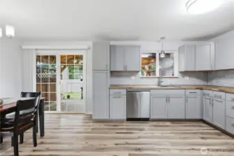 Updated East Bremerton rambler offering comfort, style, and convenience. This 3-bedroom, 1-bath home features a recently remodeled kitchen with new cabinetry, butcher block countertops, new sink, and newer appliances. Luxury plank vinyl flooring creates a seamless flow through the kitchen, dining area, living room, and hallway, with hardwood floors beneath the living room and hallway ready to be uncovered for a timeless look. New carpet adds warmth to all three bedrooms. A spacious rec room provides additional living space perfect for movie nights, hobbies, a home office, or gatherings, offering flexibility to suit a variety of lifestyles. Additional features include a durable metal roof, vinyl windows, two wood-burning stoves, and cedar siding. Enjoy outdoor living with a covered patio overlooking the fully fenced backyard with mature landscaping, ideal for relaxing or entertaining. Situated on a spacious 7,405 square foot lot in a quiet cul de sac, this home is centrally located near schools, shopping, parks, ferries, PSNS and Bangor, making it an excellent option for both convenience and lifestyle.