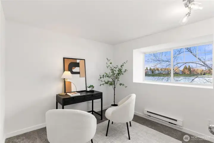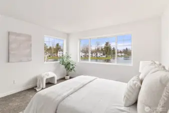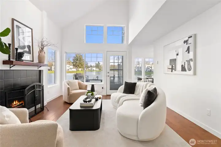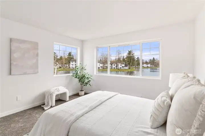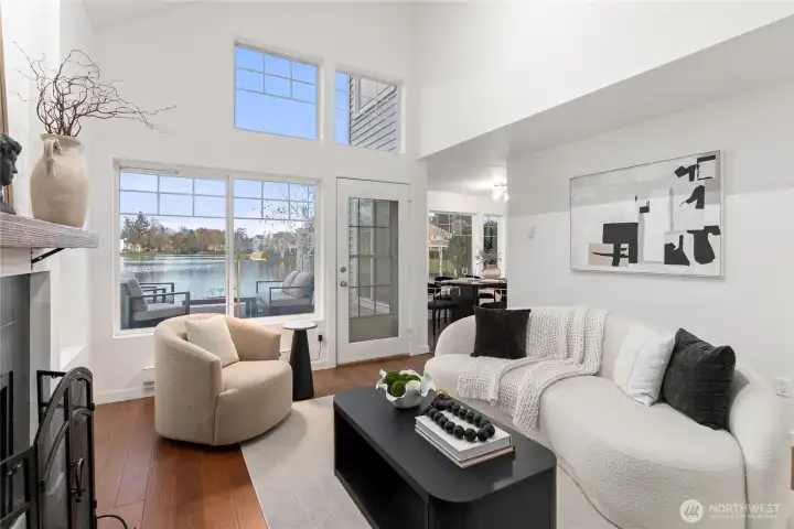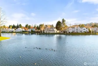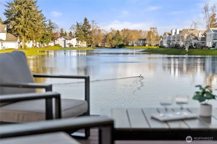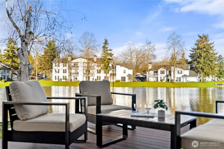 Once-in-a-lifetime opportunity to own the most unique corner unit in the community—truly one of one. No other unit offers this level of exposure, surrounded by and facing the lake from nearly every angle, delivering unmatched privacy, peace & serenity. Lives like a house w/ a functional 2-story layout, attached 2-car garage + driveway parking. Step inside to tall ceilings, an airy, open layout & hardwood floors throughout the main level. Beautifully updated kitchen w/ quartz counters, new shaker cabinets, SS appliances & stylish backsplash. Dining + nook wrapped in windows, perfectly framing the lake. Half bath + laundry on main for convenience. Upstairs offers 3 generous bedrooms, including a stunning primary retreat filled w/ lake views, walk-in closet & spacious en-suite. Bathrooms feature designer tile, new vanities & fixtures. Step outside to a spacious patio + Trex deck—perfect for relaxing, watching ducks & soaking in the views. Minutes to restaurants, Kent Ice Arena, Green River Trail w/ expansive park, shopping & more!