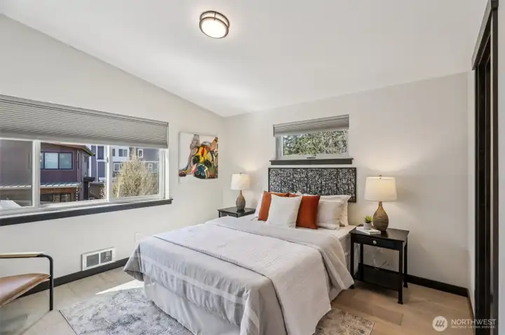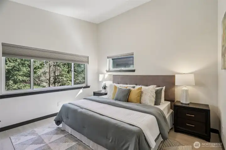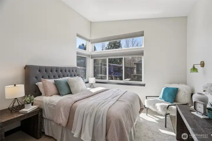 Stunning 5-Star Built-Green home tucked within a 7-acre nature preserve in the sought-after Northshore School District. This 4-bedroom, 2.5-bath, 2,074 sq ft custom modern home delivers the full package: an expansive open kitchen, warm eco-friendly finishes throughout, a metal roof, fire suppression system, mini-split heating/AC, radiant bathroom floors, and large, customizable walk-in closets, built with intention at every turn. Beyond your front door, Clearwater Commons offers something genuinely rare: a private residential community with a shared garden, an art studio featuring a pottery kiln, a sauna, a woodshop, a firepit, and forested trails leading directly to North Creek, where salmon spawn and wildlife thrives. The practical side is equally covered: EV charger, 2 off-site parking spots, 2 spacious decks, a private backyard shed with dedicated storage, and additional storage. All of it is minutes from Rapid Ride transit, I-405, and Bothell's best dining and shopping. Custom built. Community enriched. Northshore School District.