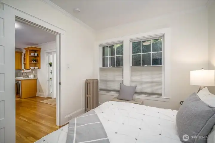 Perched atop Queen Anne, this beautifully renovated residence in the coveted Almalfi Co-op blends historic elegance with refined modern living. Designed by renowned architect Harlan Thomas, the home showcases timeless architectural details thoughtfully paired with sophisticated updates throughout. The gourmet kitchen, complete with a sunlit eat-in nook, offers both style and functionality. A tranquil, well-appointed bedroom provides a peaceful retreat, while the light-filled living room opens seamlessly to a welcoming social lanai—perfect for relaxing or entertaining. The classic clawfoot tub pays homage to the building’s storied past. Ideally situated just steps from vibrant shops and dining, and moments to Lake Union, the shores of Puget Sound, and downtown Seattle, this is urban living at its finest.
