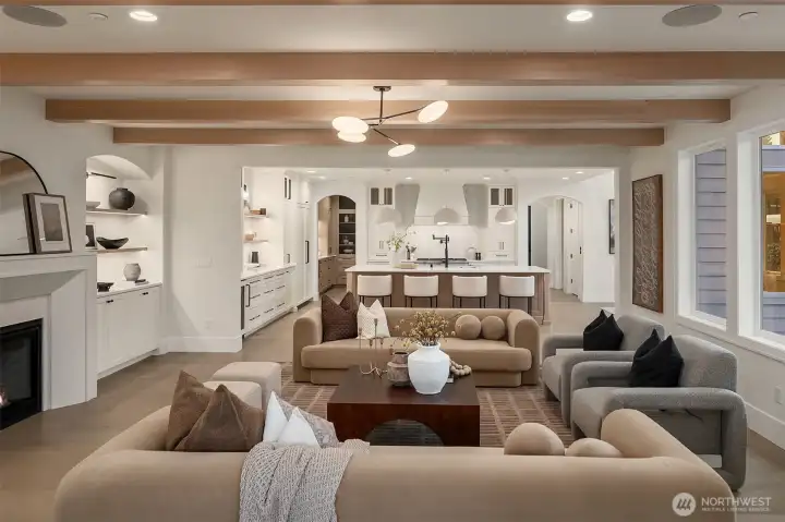 Enfort Homes presents the Knox I — a bold architectural statement in Kirkland’s coveted East of Market neighbourhood. Moments from Lake Washington beaches, neighborhood parks, and nationally ranked schools, this residence offers rare prestige with everyday convenience. Designed for elevated living and effortless entertaining, the main level showcases a dramatic open-concept great room flowing into a striking dining space with soaring 18-foot ceilings, and walls of windows that flood the home with natural light. The chef’s kitchen features premium Thermador appliances and a fully equipped butler’s pantry functioning as a second kitchen. An elevated covered patio with fireplace and heated panels extends living outdoors year-round, ideal for enjoying iconic Kirkland sunsets. A private elevator provides seamless access to all three levels. Upstairs, the sun-filled primary suite offers a spa-inspired bath with heated floors, toe-kick lighting, and direct utility access. Three additional bedrooms with an additional full bathroom include an en suite. The lower level adds flexibility with media room, beverage cooler, office or guest bedroom, and a convenient ¾ bath. Sophisticated. Striking. East of Market living at its finest.
