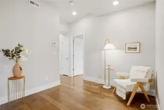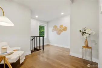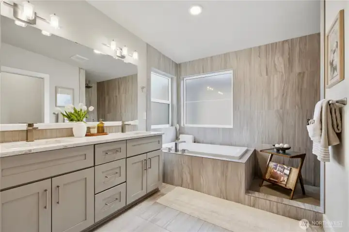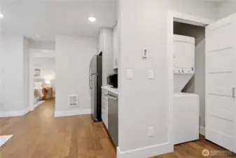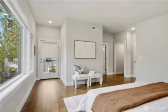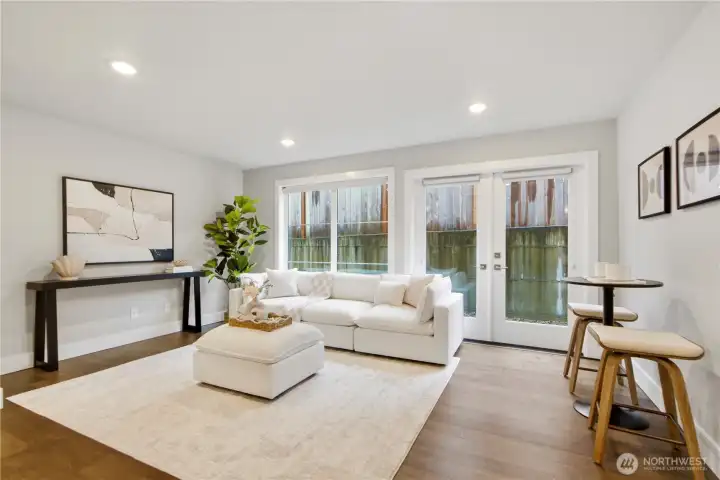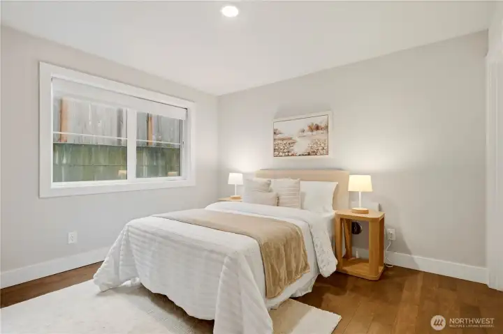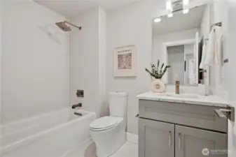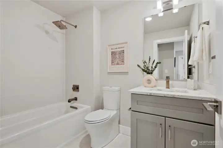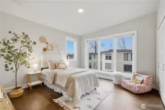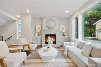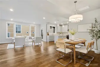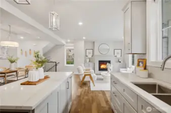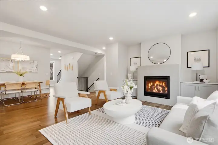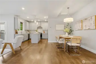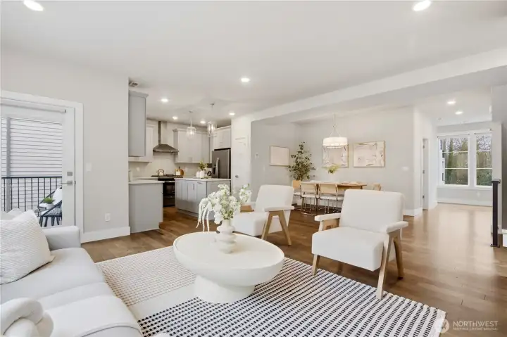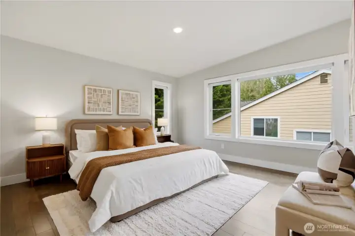 Set on a private road in the nine-home Rivendell community, this 2019 contemporary offers flexible modern living with two-minute access to I-405, putting Google, Microsoft, Totem Lake Village, and EvergreenHealth close at hand. Nearly 3,000 square feet unfolds across three well-planned levels with hardwood floors, high ceilings, and south-facing windows that fill the home with natural light throughout the day. The open great room anchored by a gas fireplace connects to a kitchen that opens to both dining and the view deck. Mountain and territorial views add a welcome sense of openness at the end of the day. Five bedrooms and 4.25 baths include a primary suite with walk-in closet plus a second primary option for guests, extended living, or added privacy. The lower-level one-bedroom suite has its own private entrance, sliding door to the backyard, and full bath, creating flexibility for extended living, workspace, or rental potential. Built to 4-Star Built Green standards with a heat pump, central A/C, and metal roof, the home is designed for efficient, low-maintenance living. The Boys & Girls Club is a short walk away — daycare and summer programs close enough to make the daily routine easier. Lake Washington School District—Twain Elementary, Rose Hill Middle, Lake Washington High—along with Totem Lake's restaurants, Cinemark, Whole Foods, and Costco put daily life within easy reach.