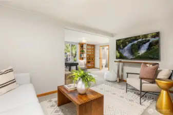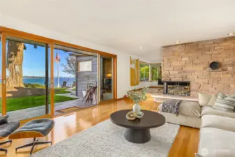 As you wind down a quiet lane, you’ll discover a private, effortlessly cool mid-century modern home, thoughtfully updated and move-in ready. Recent improvements include a new roof, fresh paint, and beautifully curated landscaping that enhances the serene setting. Positioned to capture breathtaking views from Mount Baker to the Seattle skyline, this property offers a front-row seat to the ever-changing maritime scene. Enjoy peaceful mornings from the waterside sauna or relax in the inviting sitting area overlooking the beach - an everyday reminder of why the Pacific Northwest is so special. The home lives primarily on one level, featuring open, light-filled spaces and expansive sliding doors that invite in the sunrise - one of the many perks of east-side island living. A versatile lower level offers the perfect space for a guest suite, home office, or both, complete with a three-quarter bath. Designed for both comfort and convenience, the property also features a fully finished two-car garage, ideal for a car enthusiast or additional workspace. With sun throughout the day and an easy “lock-and-go” lifestyle, this home is perfectly suited as a full-time residence or a peaceful retreat. All this, just minutes from local favorites like Bay Hay & Feed and Via Rosa, makes this offering truly exceptional.