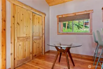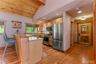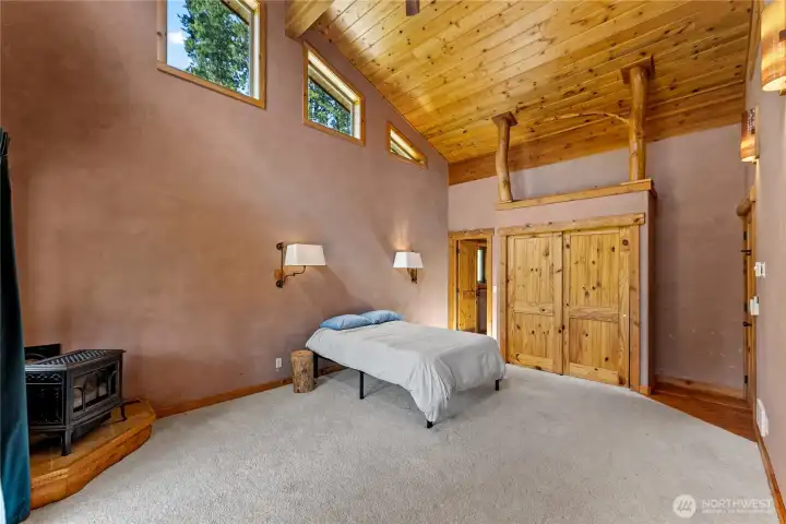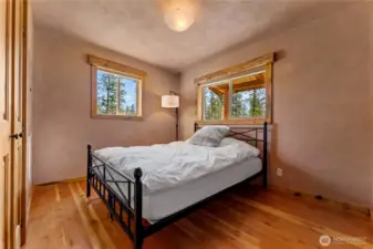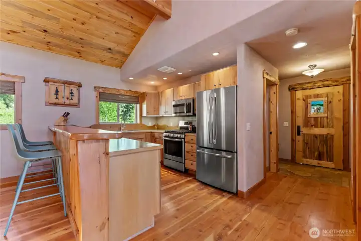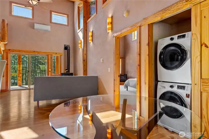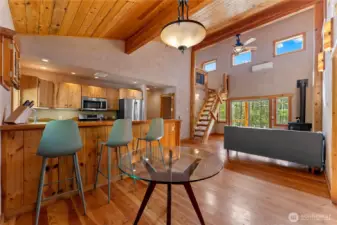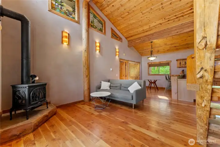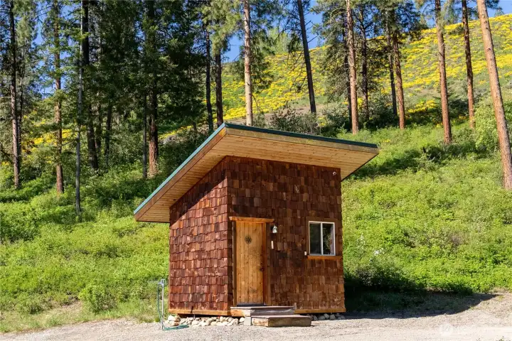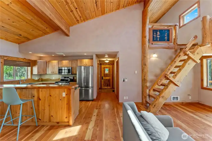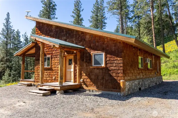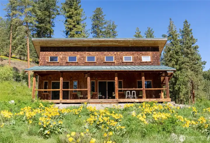 Methow Contemporary Cabin — Showcasing exceptional craftsmanship throughout, this thoughtfully designed and energy-efficient home features SIP-panel construction, passive solar design, and soaring vaulted ceilings. Offering 2 bedrooms, 1.75 baths, plus a versatile loft space, the home sits on a beautifully maintained 1.89-acre parcel recently treated to Firewise standards.Ideally located just steps from the Methow Trails system for cross-country skiing, mountain biking, and hiking — and moments from Patterson Lake — this serene community is surrounded by National Forest, offering year-round recreation right outside your door.Interior highlights include clay plaster walls, fir flooring and trim, custom glass sconces, stained glass accents, and travertine tile. Mini-split HVAC systems provide efficient heating and cooling for all-season comfort.A spacious 40-foot covered deck extends your living space outdoors — perfect for relaxing or entertaining while taking in views of sunlit meadows and mountain peaks, especially vibrant during balsamroot season. A circular drive, storage shed, and dedicated ski waxing bench complete this exceptional Methow retreat.